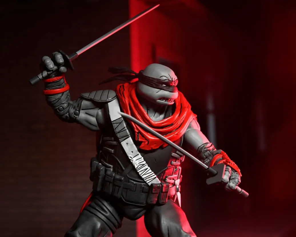 Zu einer der verschiedenen Comic-Varianten von Teenage Mutant Ninja Turtles kommt dieses coole Actionfigur. Sie ist ca. 18 cm groß und wird mit weiterem Zubehör in einer Fensterbox geliefert.
