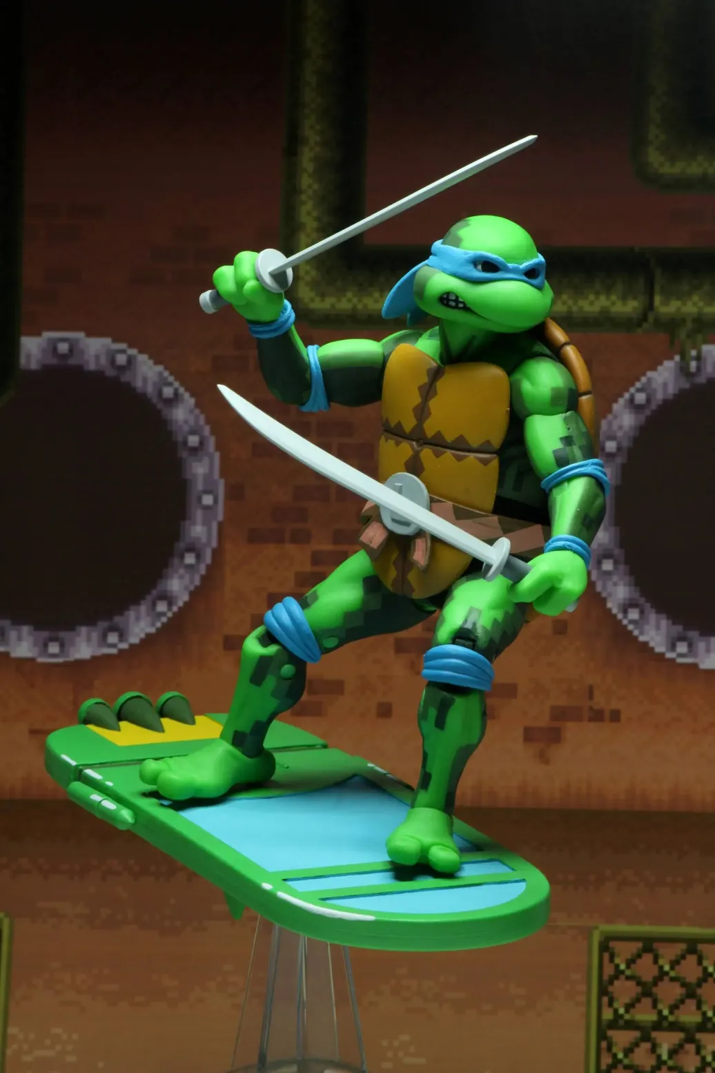Zum Videospiel Teenage Mutant Ninja Turtles: Turtles in Time kommt diese detailreiche Leonardo Actionfigur. Sie ist ca. 18 cm groß und wird zusammen mit weiterem Zubehör in einer Fensterbox geliefert.