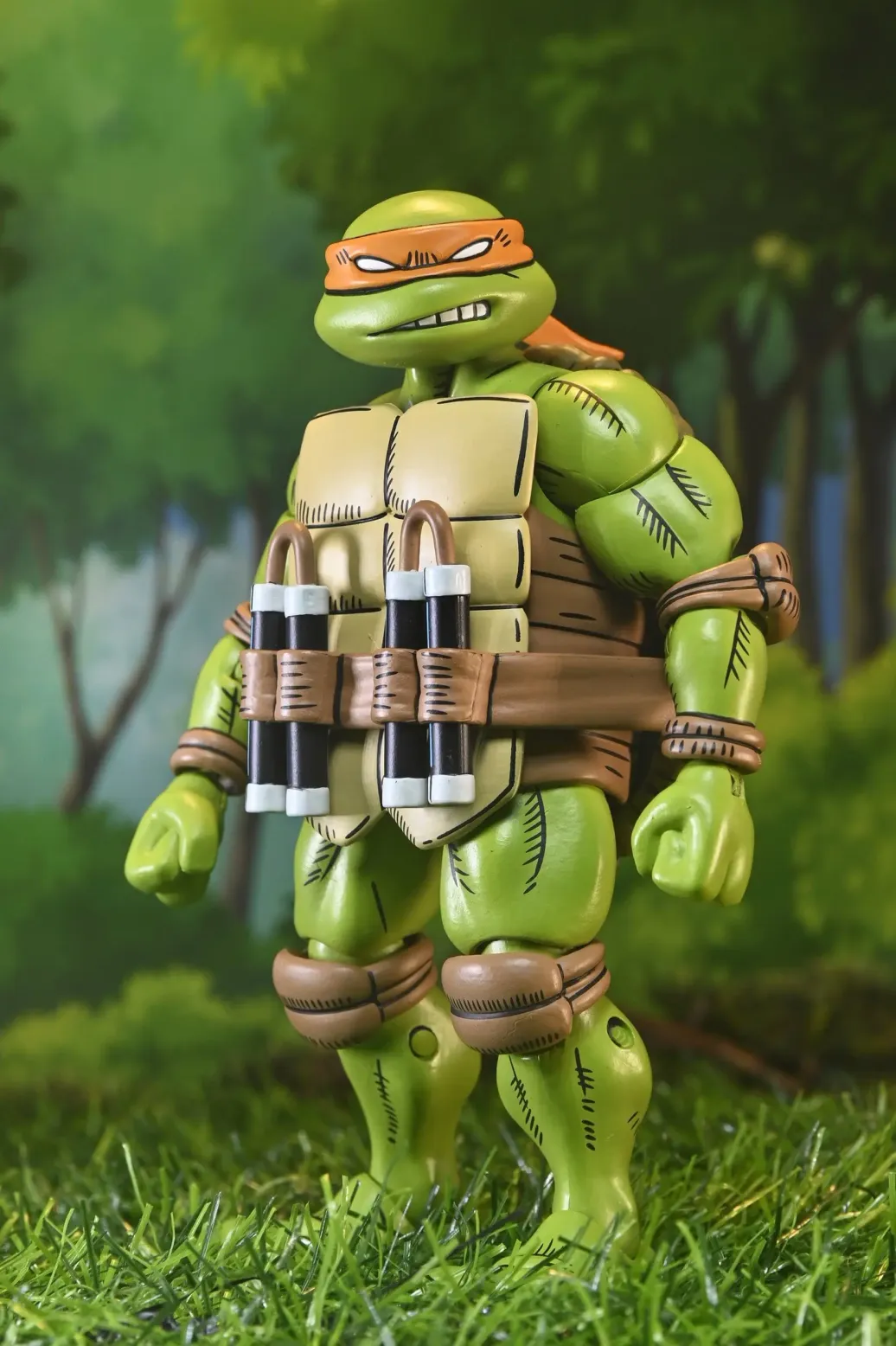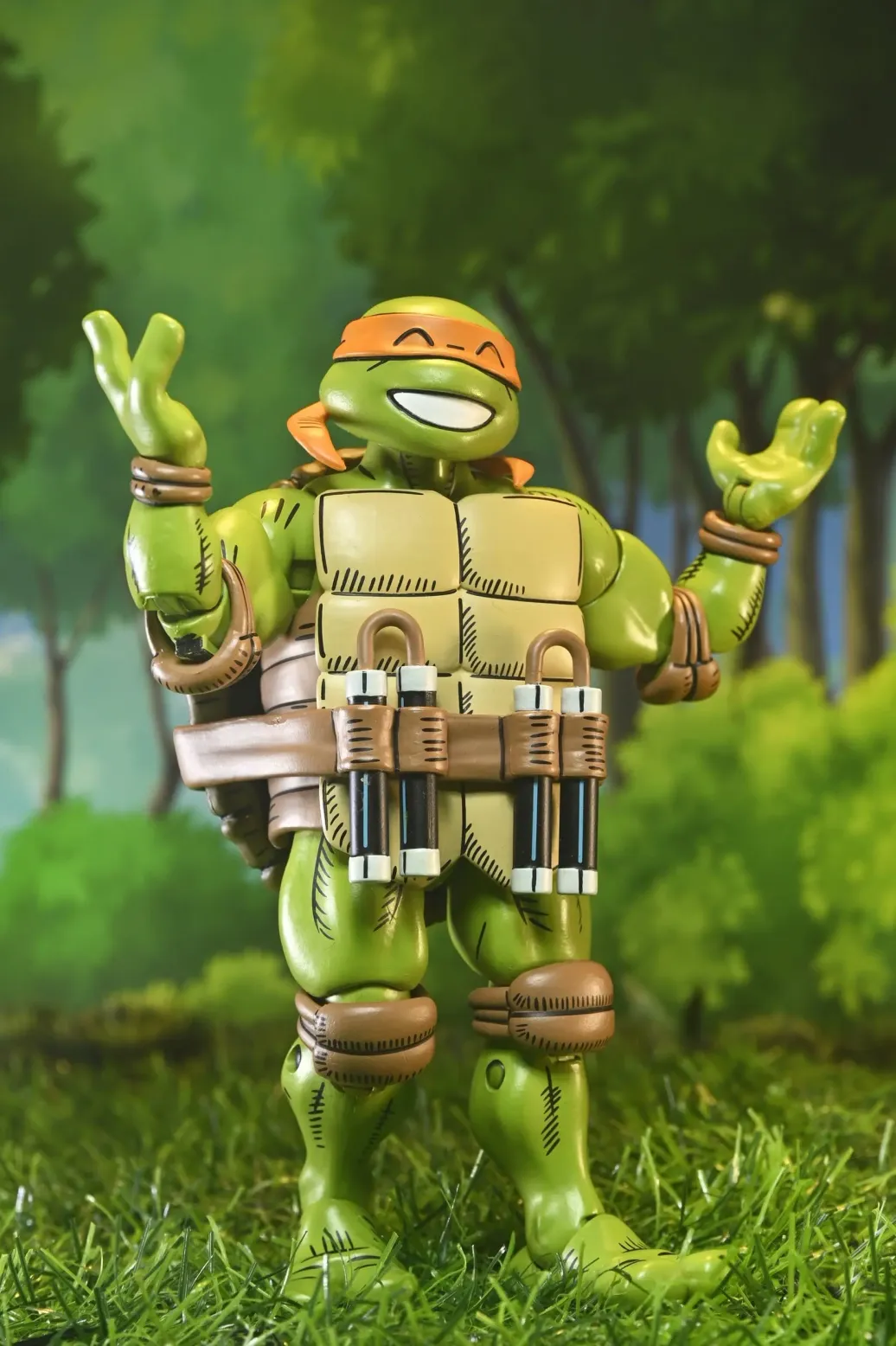 Feiern Sie über 40 Jahre Teenage Mutant Ninja Turtles Comics und Usagi Yojimbo! Basierend auf der Arbeit des legendären Künstlers Stan Sakai und in Zusammenarbeit mit Dogu Publishing produziert, verfügt dieser Ultimate Michelangelo über völlig neue Skulpturen und eine authentische, stilisierte Comic-Buch-Deko. Die 7-Zoll-Actionfigur von NECA enthält austauschbare Köpfe und Hände sowie seine charakteristischen Nunchakus. Wird in einer sammlerfreundlichen Fensterbox-Verpackung mit aufklappbarer Frontklappe geliefert. Größe: 17,8 cm