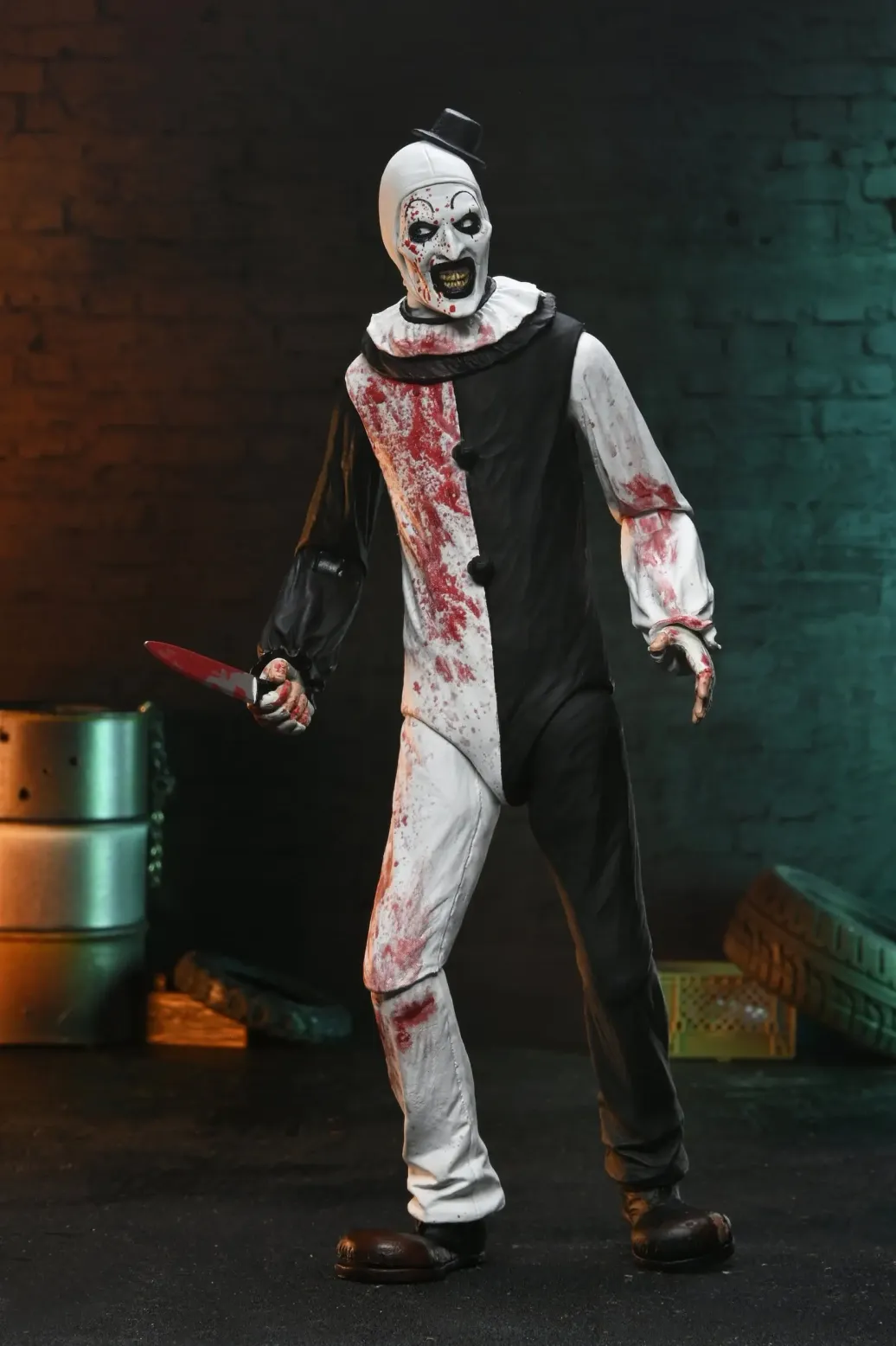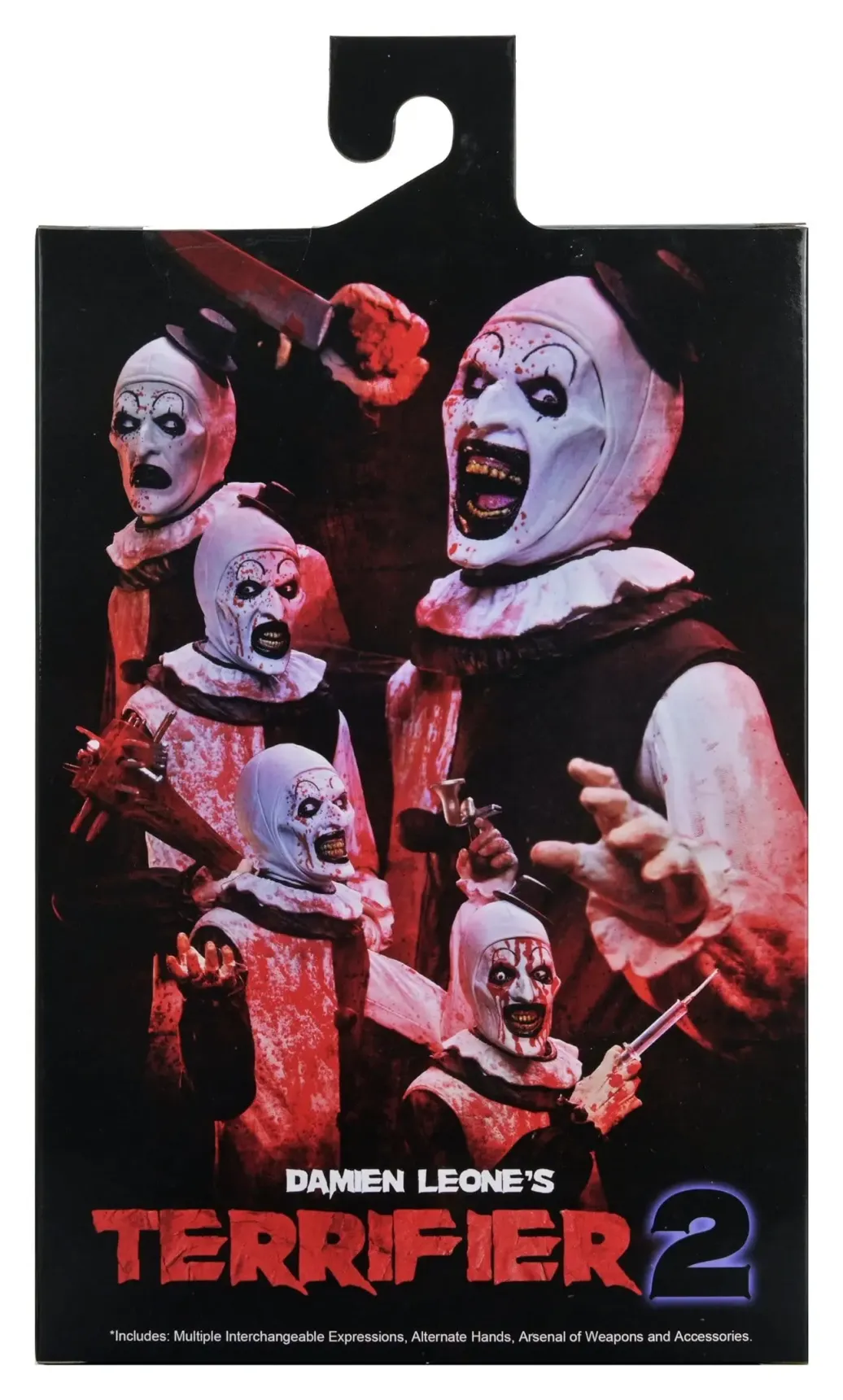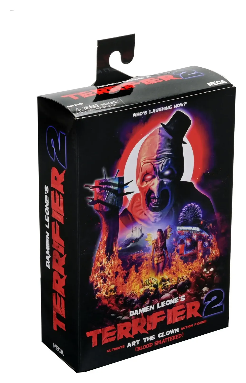 Aus Damien Leones Terrifier 2 bringt NECA Ihnen diese Ultimate Art the Clown Actionfigur – eine erschreckende Hommage an eine moderne Horror-Ikone. Diese voll bewegliche Killer-Clown-Figur im 7-Zoll-Maßstab verfügt über eine blutbespritzte Deko, die vom Blut seiner Opfer von seinem kleinen Hut bis zu seinen Clownschuhen trieft. Diese Figur enthält mehrere austauschbare Gesichtsplatten und Hände sowie eine Reihe blutiger Waffen, um die Sammlung zu erweitern. Der sadistische Schlitzer wird in einer sammlerfreundlichen Fensterbox-Verpackung mit aufklappbarer Frontklappe geliefert, die mit Kunstwerken von www.creepyduckdesign.com versehen ist. Holen Sie sich diese stille, tödliche Bedrohung nach Hause, um Ihre Regale zu heimsuchen! Größe: 17,8 cm