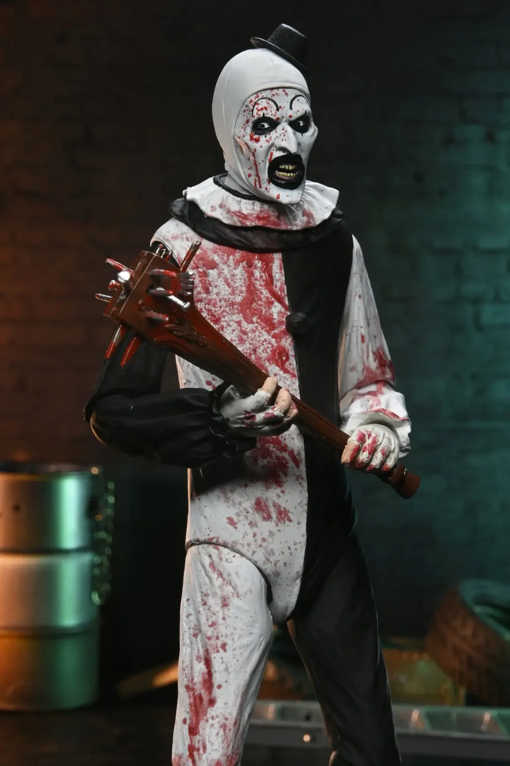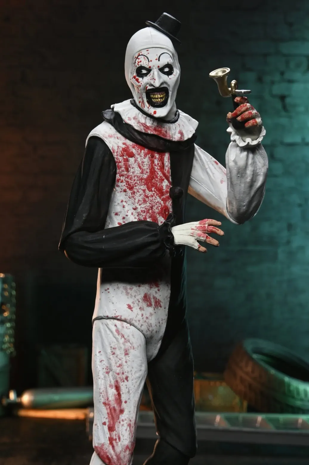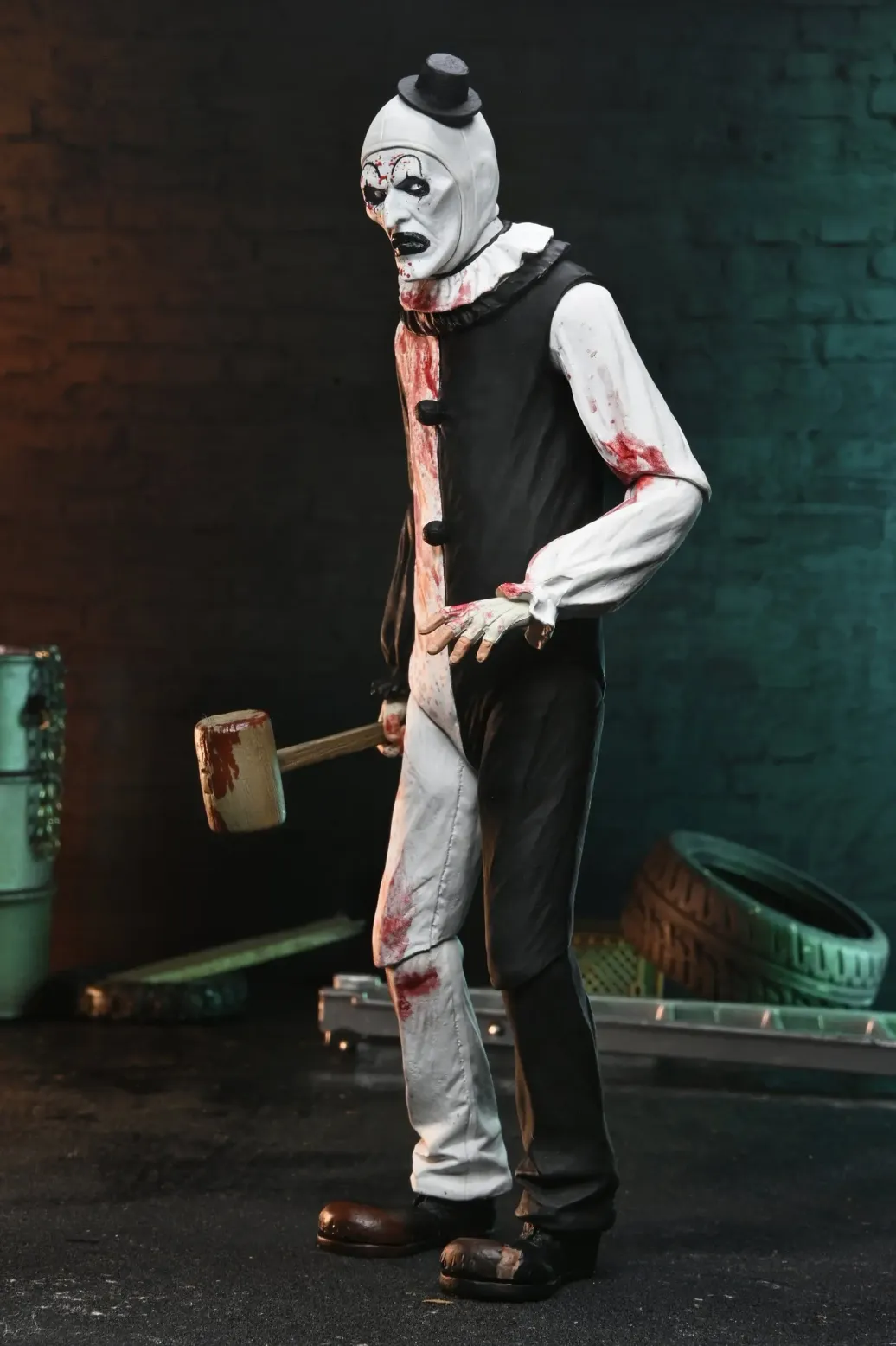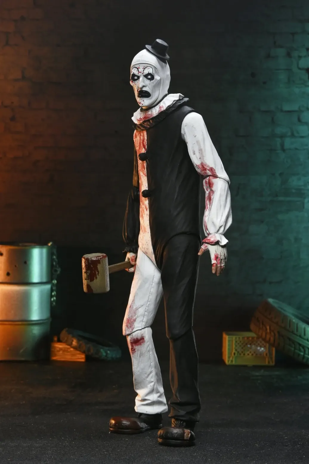 Aus Damien Leones Terrifier 2 bringt NECA Ihnen diese Ultimate Art the Clown Actionfigur – eine erschreckende Hommage an eine moderne Horror-Ikone. Diese voll bewegliche Killer-Clown-Figur im 7-Zoll-Maßstab verfügt über eine blutbespritzte Deko, die vom Blut seiner Opfer von seinem kleinen Hut bis zu seinen Clownschuhen trieft. Diese Figur enthält mehrere austauschbare Gesichtsplatten und Hände sowie eine Reihe blutiger Waffen, um die Sammlung zu erweitern. Der sadistische Schlitzer wird in einer sammlerfreundlichen Fensterbox-Verpackung mit aufklappbarer Frontklappe geliefert, die mit Kunstwerken von www.creepyduckdesign.com versehen ist. Holen Sie sich diese stille, tödliche Bedrohung nach Hause, um Ihre Regale zu heimsuchen! Größe: 17,8 cm