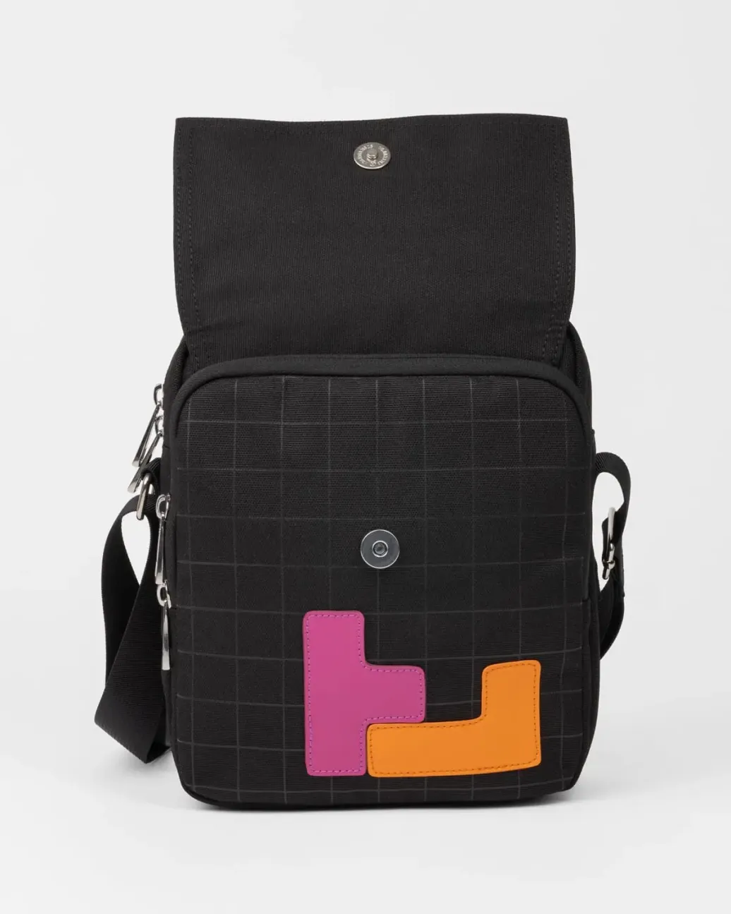 Die stylische Tetris™ "Murse" ist wasserabweisend und besteht aus GRS-zertifiziertem, recyceltem Polyeser, mit einer stabilen, gepolsterten Rückseite für Stabilität und Tragekomfort. Sie enthält 2 Fächer auf der Innenseite und eine zusätzliche Reißverschlusstasche auf der Vorderseite unter der Abdeckklappe mit Magnetverschluss.