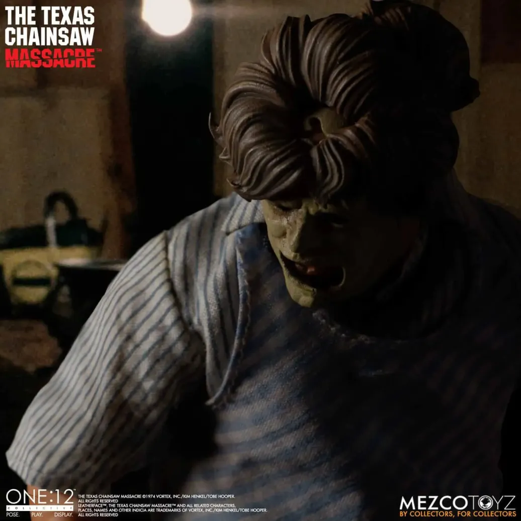 Zum Horrorfilm Texas Chainsaw Massacre kommt diese detailreiche Actionfigur. Sie ist 17 cm groß und wird mit weiterem Zubehör und Austauschteilen in einer Fensterbox geliefert.