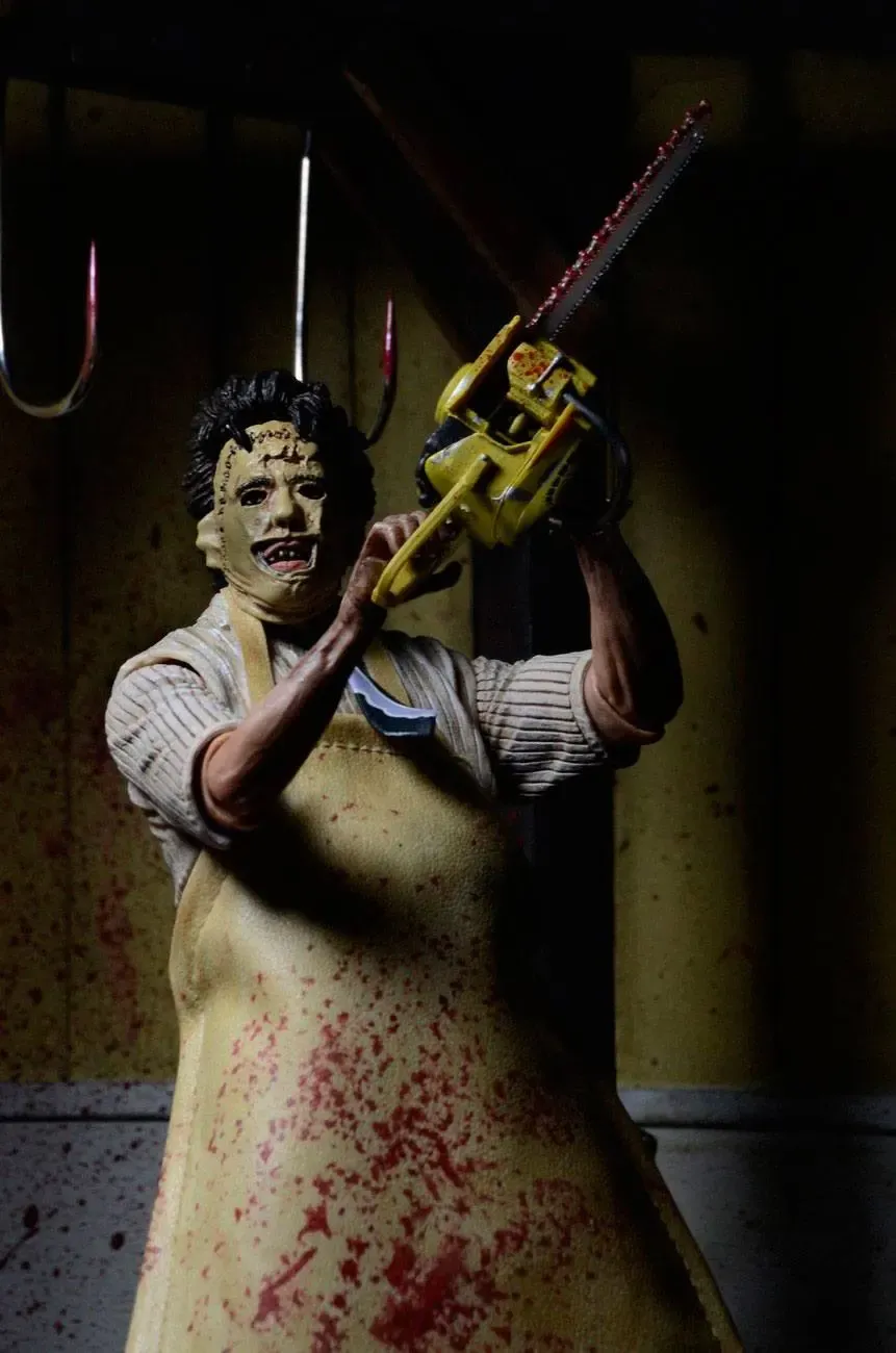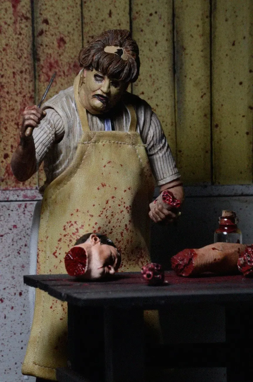 Zum 40. Geburtstag von Blutgericht in Texas (The Texas Chainsaw Massacre) kommt diese coole Figur von Leatherface im Retro-Look. Sie ist ca. 18 cm groß und wird in einer Fensterbox geliefert.