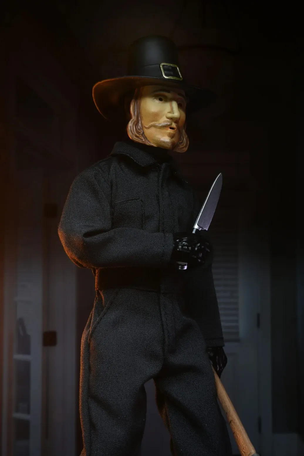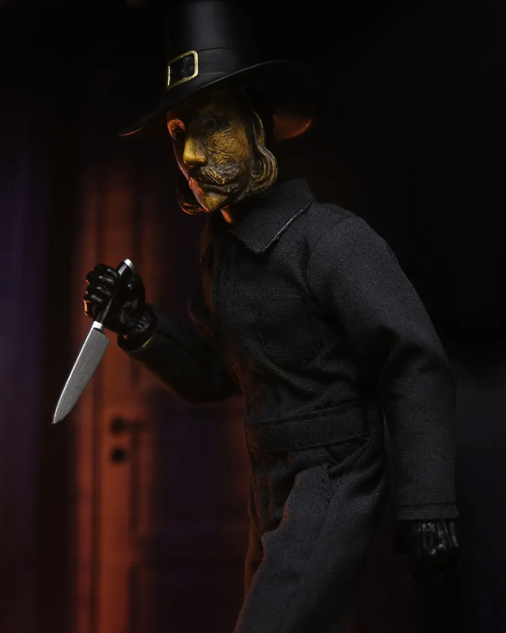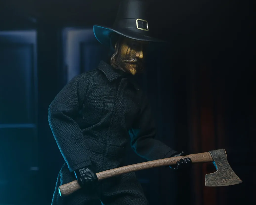 Zum Film "Thanksgiving" kommt diese detailreiche Actionfigur. Sie ist ca. 20 cm groß, trägt echte Stoffkleidung und wird mit weiterem Zubehör in einer Blisterverpackung geliefert.