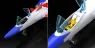 - Für das Cockpit des Fire Jet werden durchsichtige Teile verwendet. Das Fahrwerk kann ohne austauschbare Teile ausgefahren und gerollt werden.