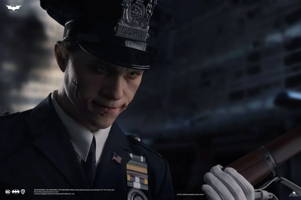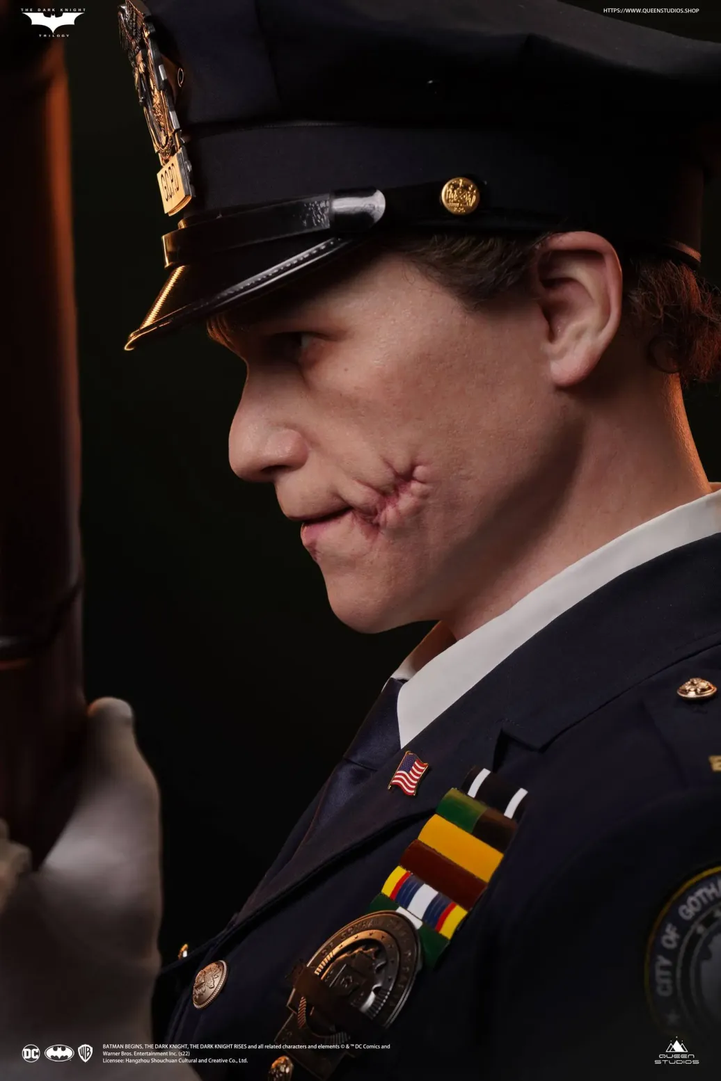 Zum Film "The Dark Knight" kommt diese detailreiche Büste. Das hochwertige Sammlerstück wurde aus hochwertigem Silikon gefertigt. Sie ist ca. 87 x 90 x 55 cm (85 x 70 x 50 cm ohne Waffe) groß und wird inklusive einer Special Base styropor-geschützt im bedruckten Karton geliefert.