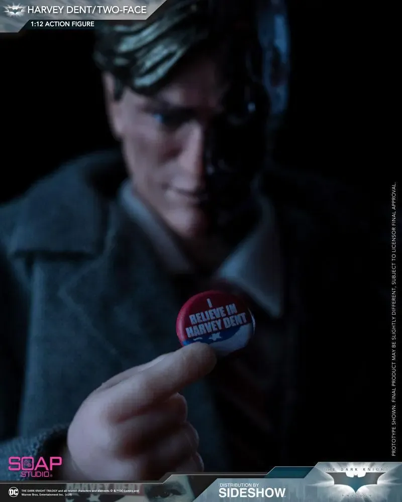 Aus dem Blockbuster The Dark Knight kommt diese großartige Actionfigur von Harvey Dent Two-Face. Sie ist ca. 18 cm groß (Maßstab 1/12), trägt echte Stoffkleidung und wird mit weiterem Zubehör und Austauschteilen geliefert.