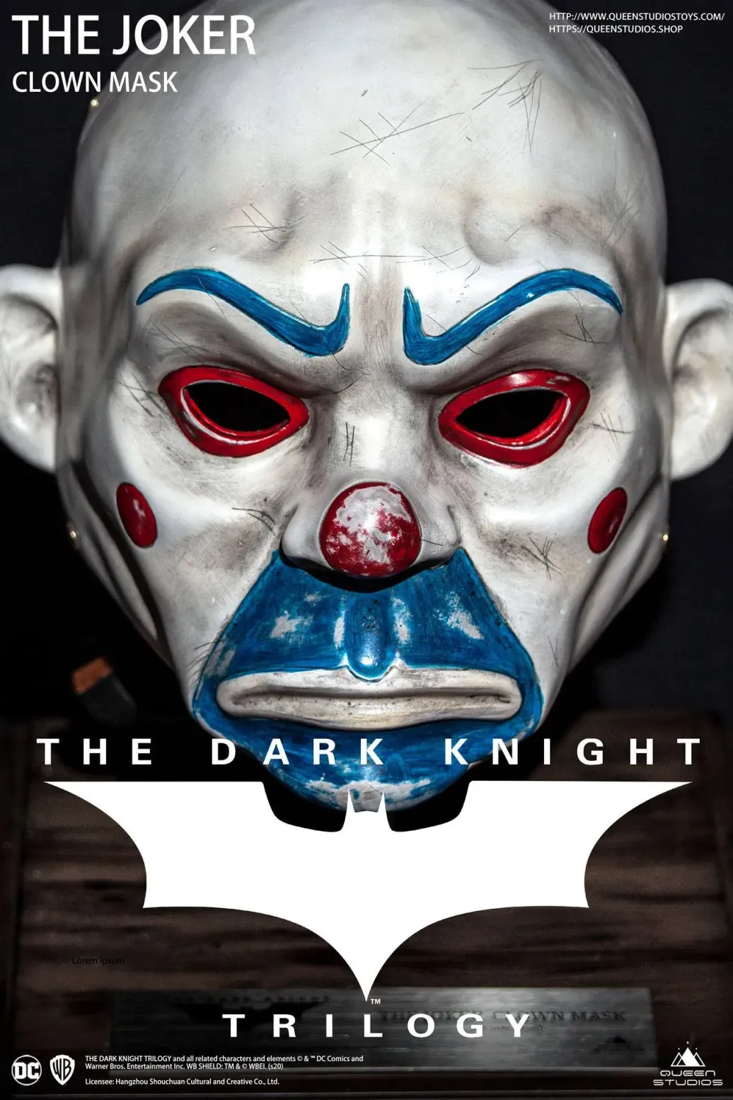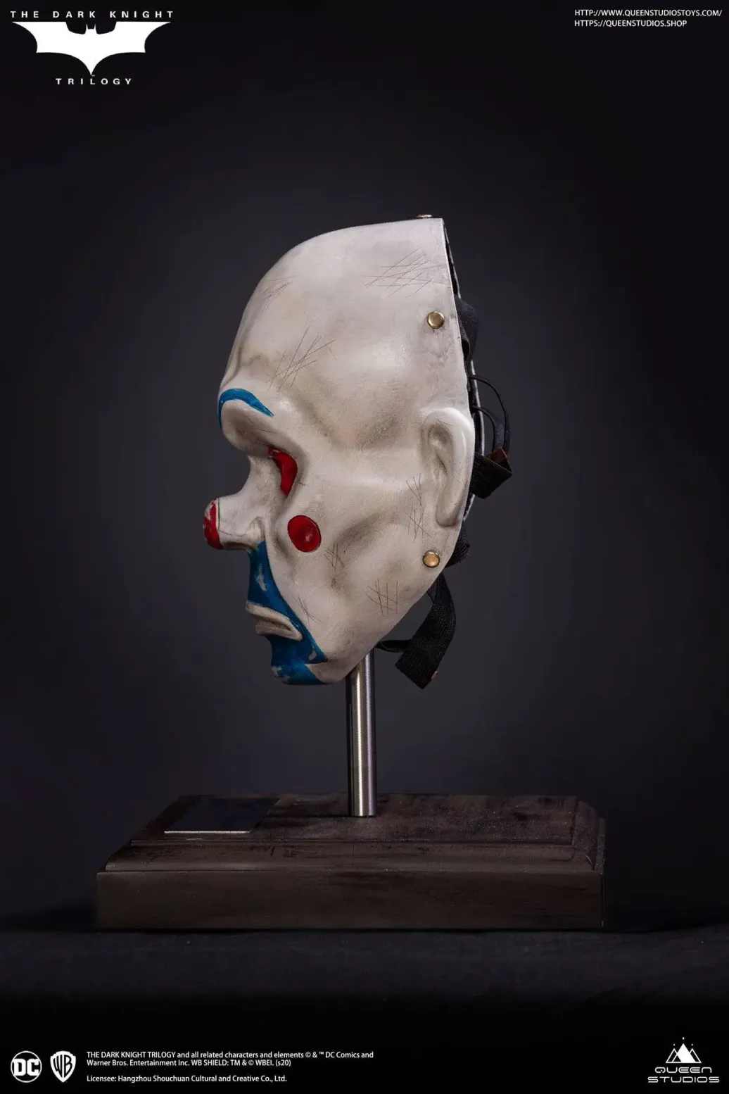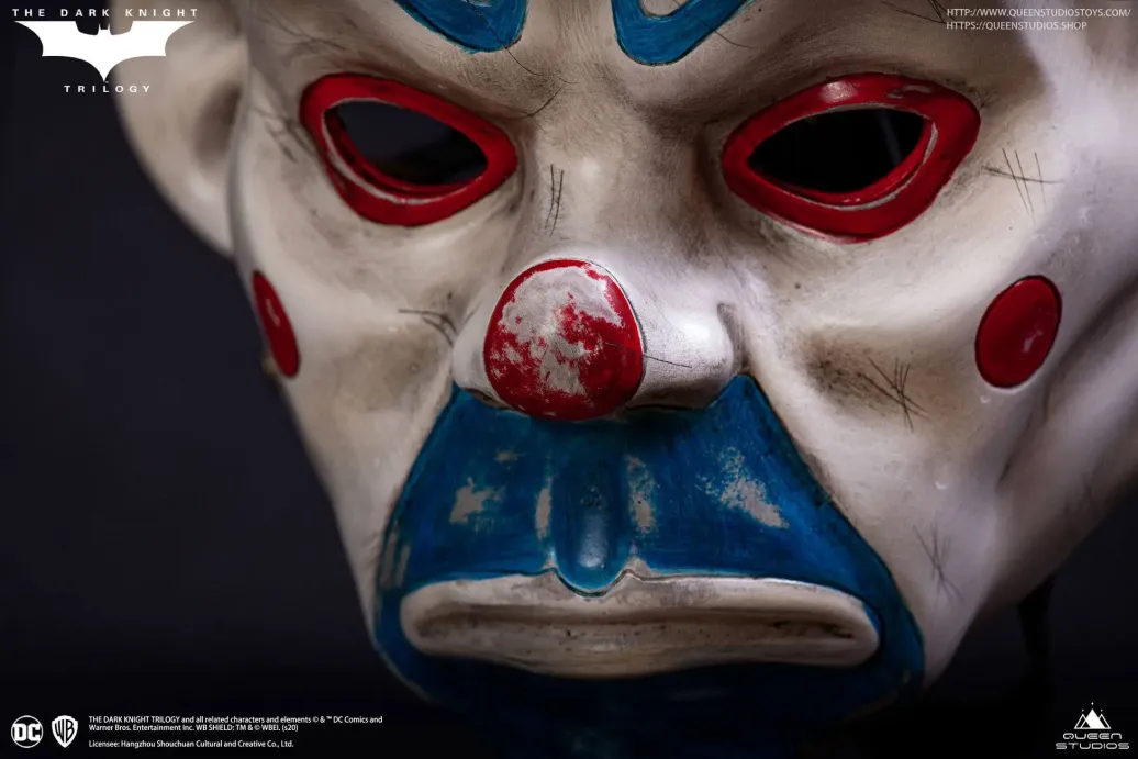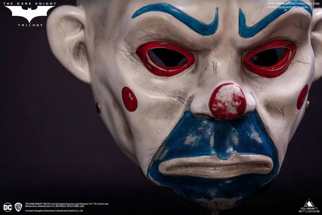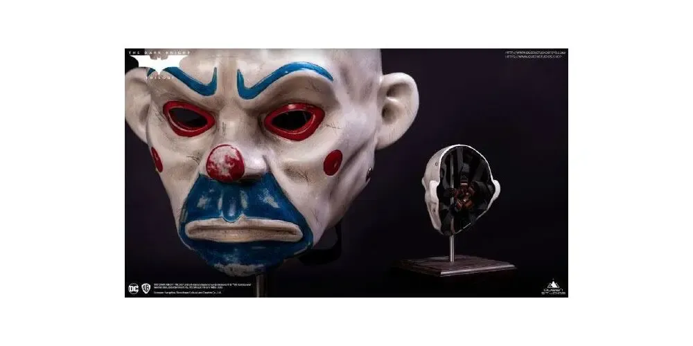 Zum Film The Dark Knight kommt diese detailreiche Nachbildung der in der Eröffnungsszene von Heath Ledger's getragenen Maske.