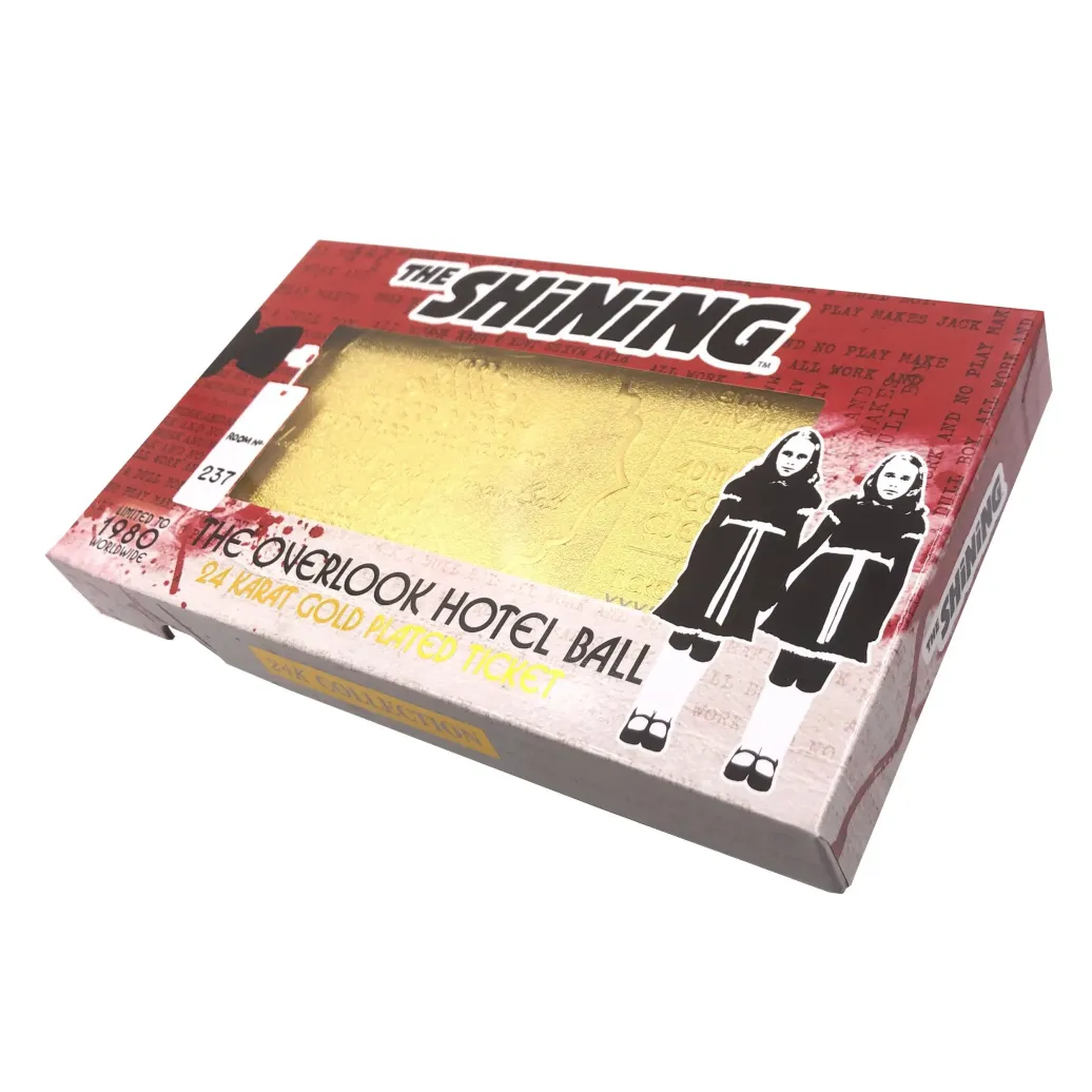 Zum Film "The Shining" kommt diese originalgetreue Nachbildung, gefertigt aus vergoldetem Metall. Die Replik wird in einer bedruckten Fensterbox geliefert. Größe: 18,6 x 2,1 x 10,6 cm
