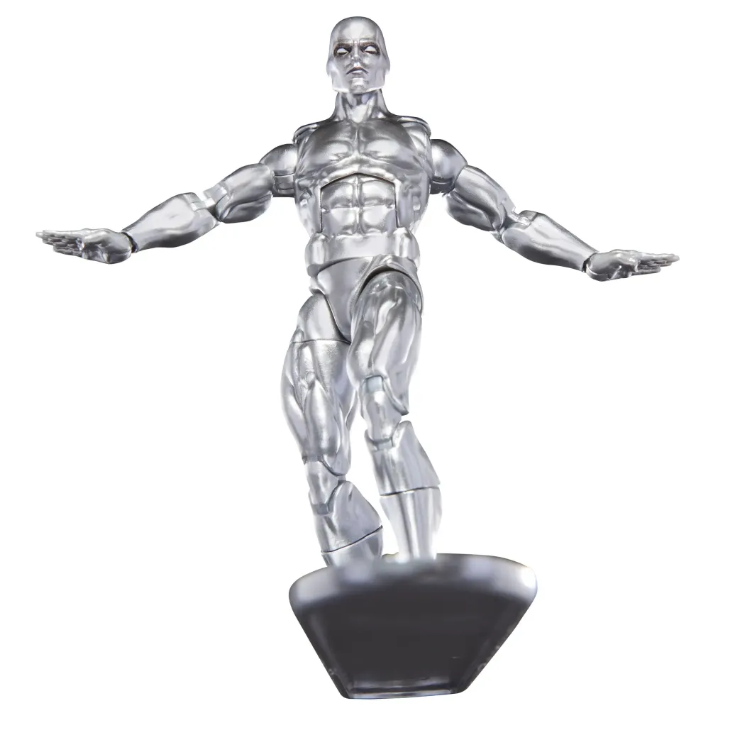 Mit Silver Surfer aus der Hasbro Marvel Legends Series kann die Spannung und das Wunder des Marvel Universums in der eigenen Sammlung zum Ausdruck gebracht werden. Diese Marvel Sammelfigur in einer Skala von 15 cm ist dem Look des Charakters aus den Marvel Silver Surfer #1 (1968) und den Fantastic Four Comics nachempfunden. Sie ist vollbeweglich, bietet ein Premium-Design und verfügt über einen flexiblen Kopf und bewegliche Arme und Beine. Das Marvel Action-Figurenset wartet mit 6 Accessoires auf, darunter 2 austauschbare Hände, ein austauschbarer Kopf sowie ein Comicbuch-Accessoire aus Kunststoff, das das Cover von Silver Surfer #1 (1968) zeigt. Hasbro Marvel Action-Figuren in einer Skala von 15 cm sind hervorragend geeignet, um sie in einer Fan-Kollektion zu präsentieren. Mit Marvel Legends Action-Figuren und Marvel Sammlerobjekten können die Szenen aus den Comics zu Hause nachgestellt werden.