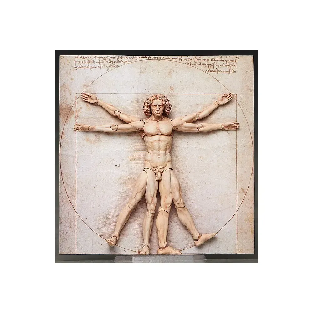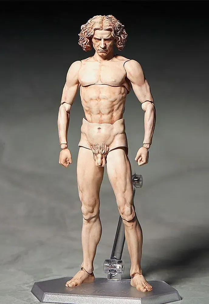 Der Vitruvian Man kommt als detailreiche Actionfigur. Er ist ca. 16 cm groß und wird inkl. diversen Austauschteilen und Base geliefert.