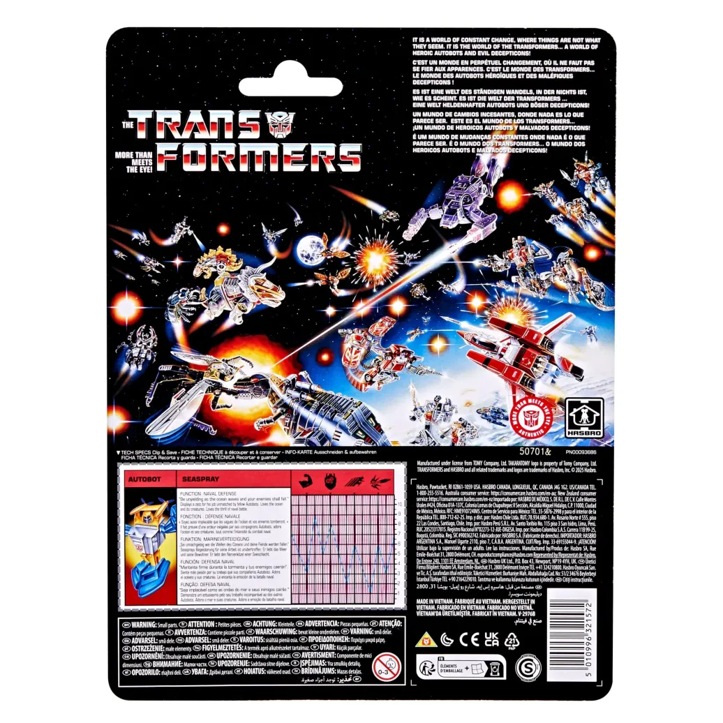 Mit dem Transformers Retro Autobot Seaspray Spielzeug können die Fans die Nostalgie der beliebten G1 Action-Figuren neu erleben! Das Spielzeug lässt sich in 22 Schritten vom Roboter in ein Boot verwandeln. Seasprays Begeisterung für seine Arbeit ist unübertroffen. Er liebt das Meer und seine Bewohner und den Nervenkitzel einer Seeschlacht. Transformers Retro G1 Action-Figuren warten im Vintage-Stil mit Accessoires, speziellem Verpackungsdesign und Info-Karten auf. Die Info-Karte auf der Verpackung kann ausgeschnitten und aufbewahrt werden, um sie zu vergleichen und dann zu sehen, wie diese Figur im Vergleich zu anderen heldenhaften Autobots und bösen Decepticons abschneidet. (Jeweils separat erhältlich. Je nach Verfügbarkeit.)