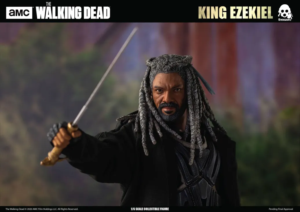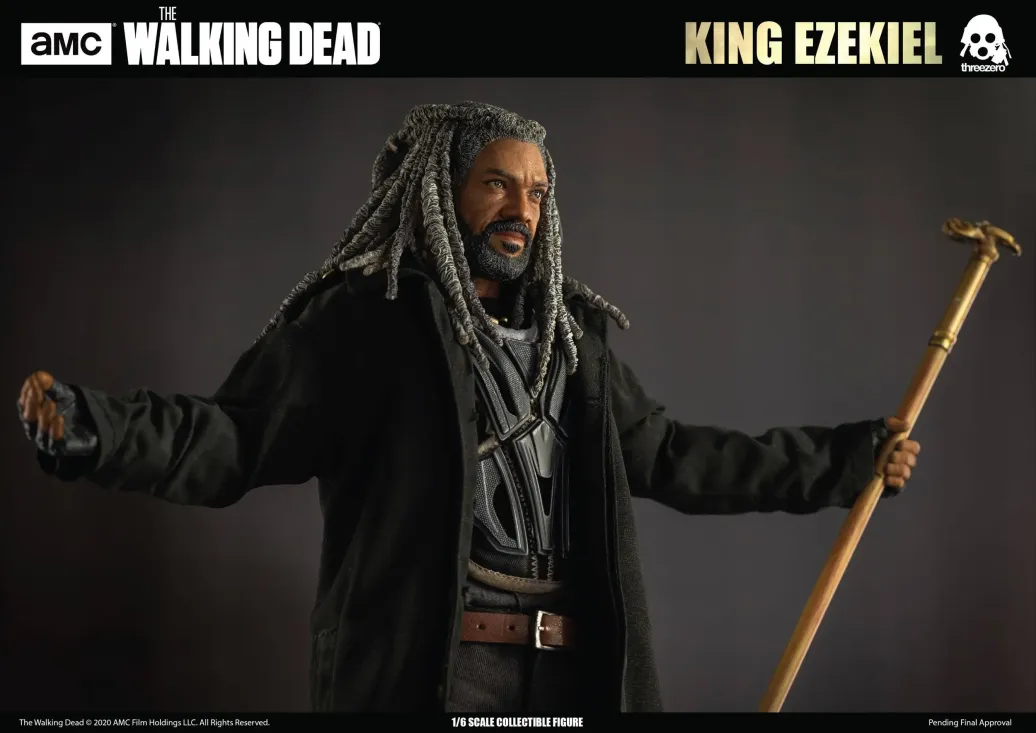 Zur erfolgreichen TV-Serie The Walking Dead kommt diese detailreiche King Ezekiel Actionfigur. Sie ist ca. 30 cm groß, trägt echte Stoffkleidung und wird mit weiterem Zubehör geliefert.