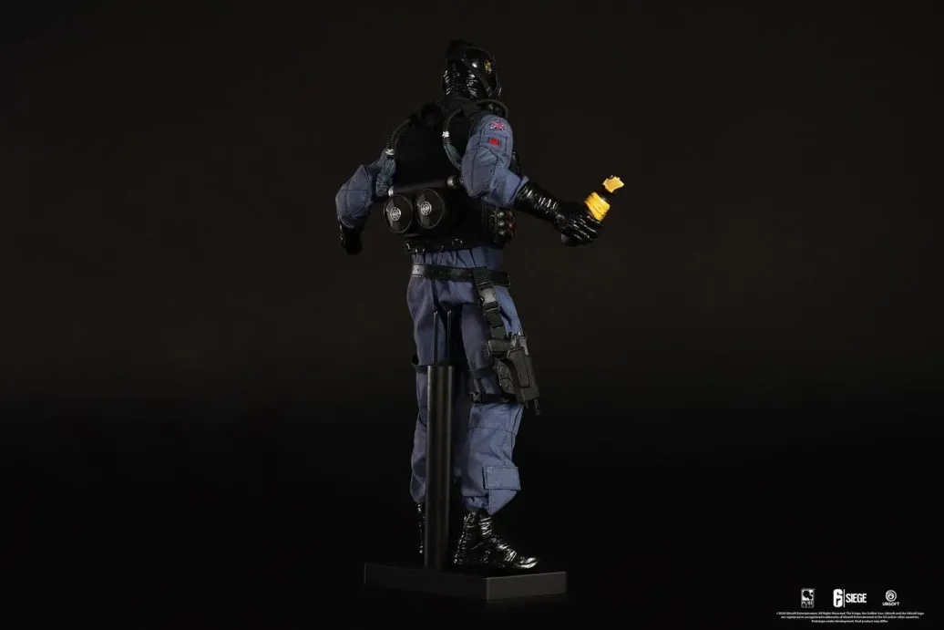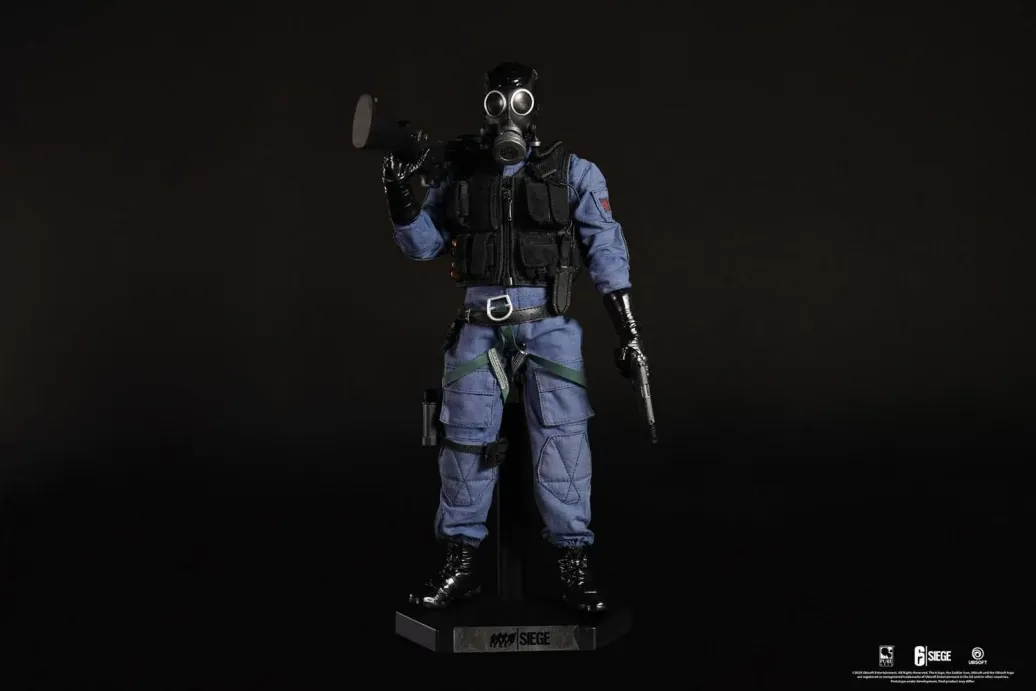 Zum Videospiel Tom Clancy's Rainbow Six Siege kommt diese detailreiche, bewegliche Smoke Actionfigur. Sie ist ca. 30 cm groß und wird mit weiterem Zubehör und Base in einer bedruckten Fensterbox geliefert.