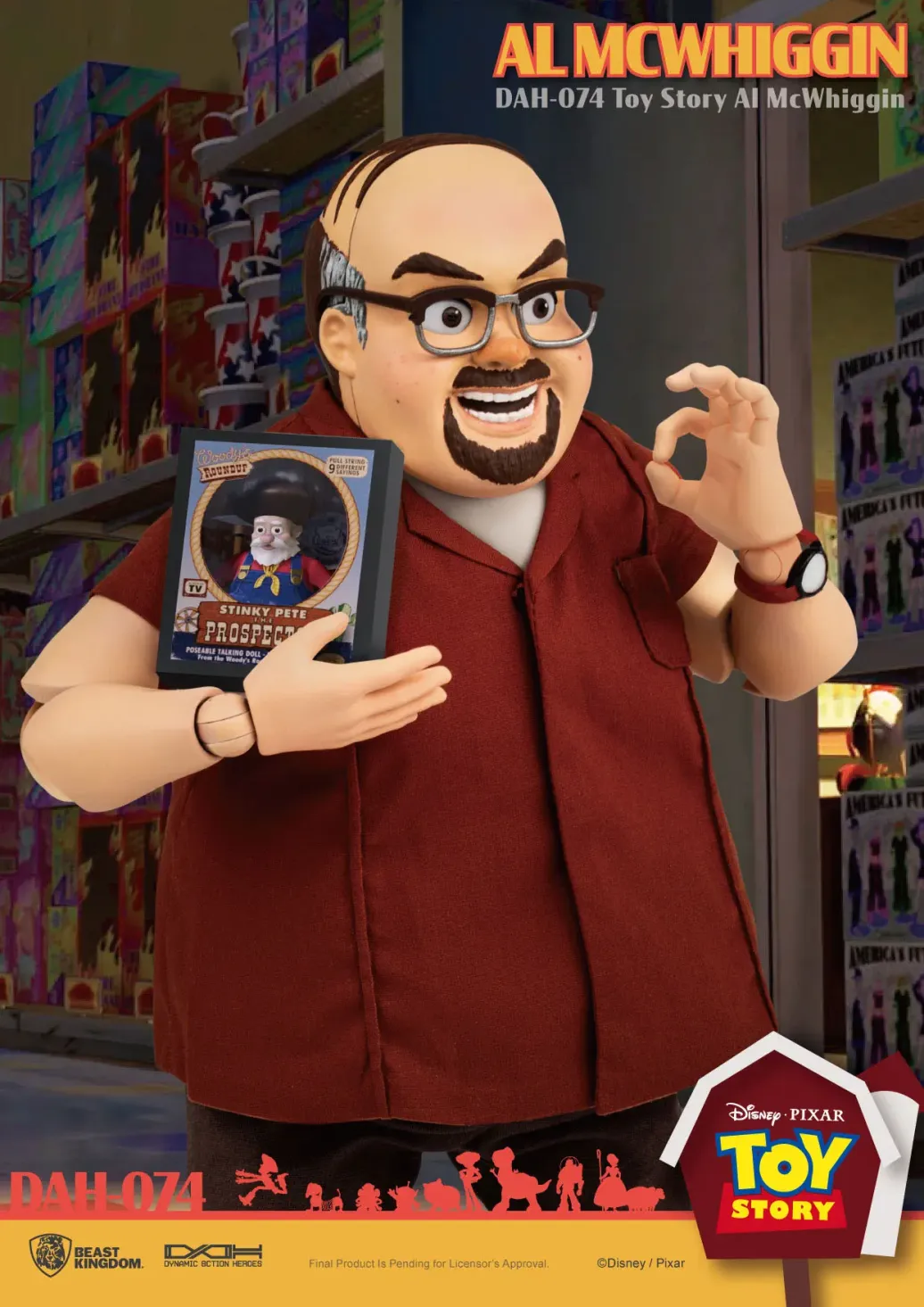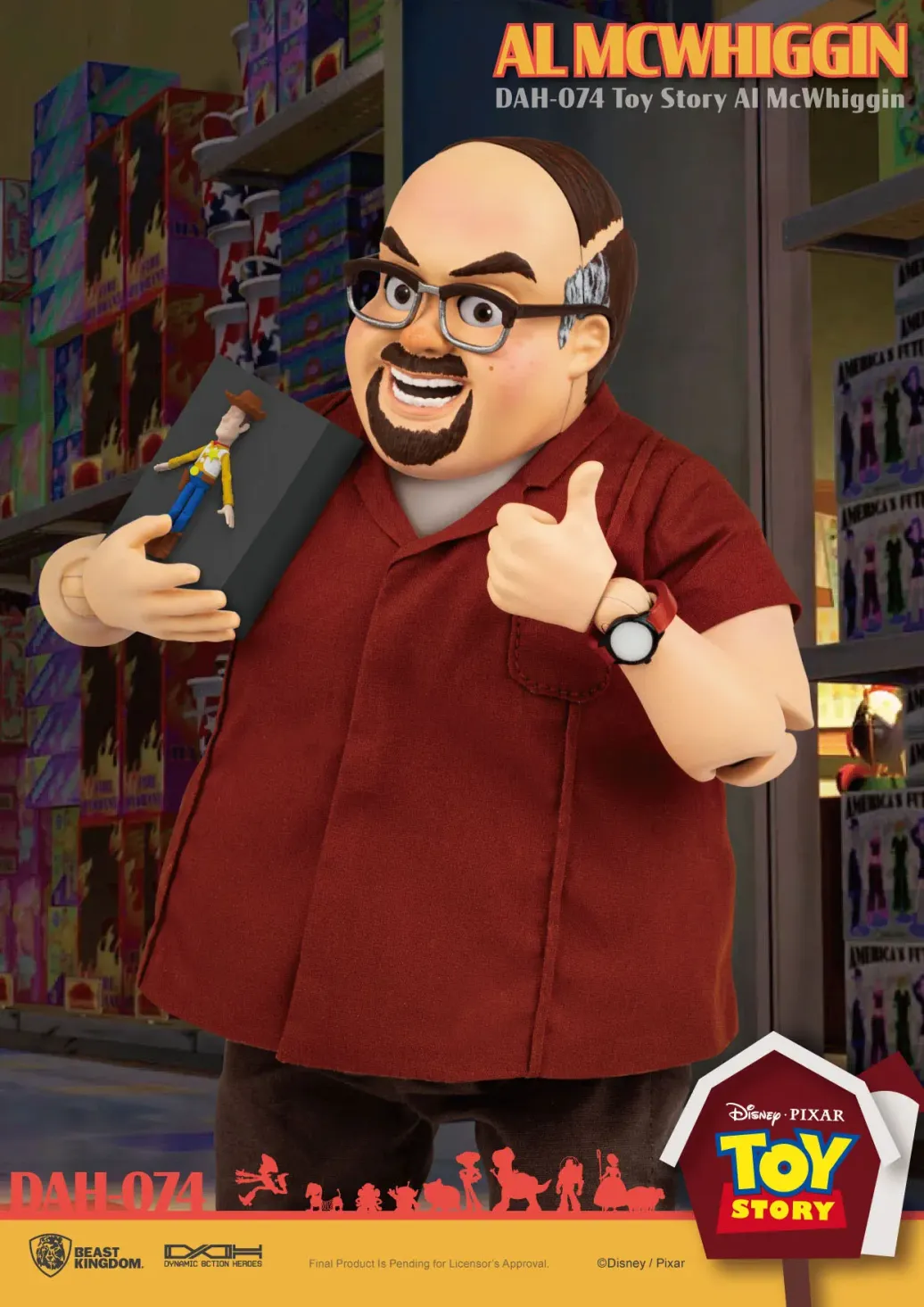 Zum Animationsfilm "Toy Story 2" kommt diese großartige Actionfigur aus der "Dynamic 8ction Heroes" Serie von Beast Kingdom Toys. Sie ist ca. 14 cm groß und wird mit weiteren Austausch- und Zubehörteilen in einer bedruckten Box geliefert.