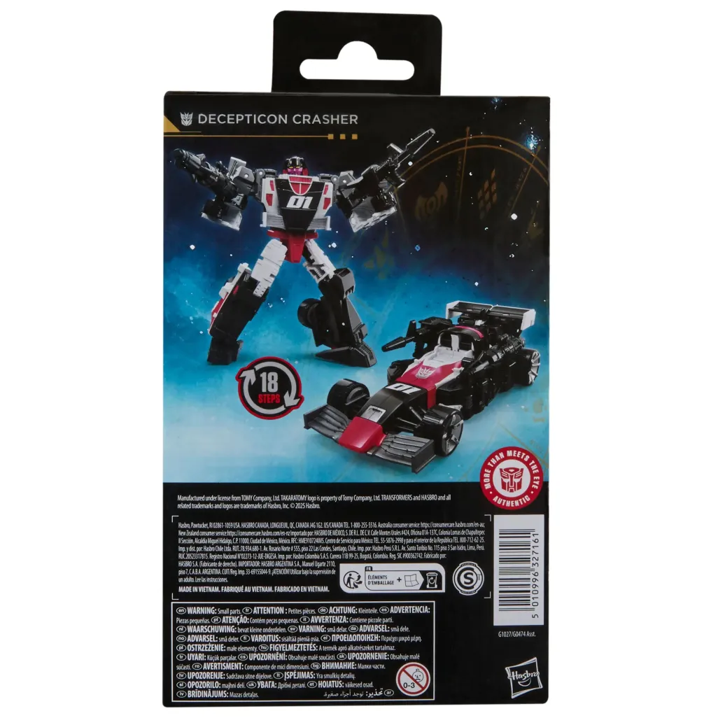 Mit der Decepticon Crasher Action-Figur aus der Transformers Age of the Primes Deluxe-Klasse können die Lieblingscharaktere aus der Welt der Transformers Roboter in der eigenen Sammlung vereint werden. Die Decepticon Crasher Action-Figur (14 cm) lässt sich in 18 Schritten vom Roboter in einen Sportwagen verwandeln. Enthält 2 Blaster als Accessoires, die sich in beiden Modi befestigen lassen. Die Decepticon Crasher Figur ist von der Erscheinung des Charakters im Transformers Universum inspiriert. Kopf, Arme und Beine sind beweglich für actionreiche Posen. Transformers: Age of the Primes öffnet die Welt der Primes, der allerersten Bots in der Transformers Mythologie und eine Gruppe von dreizehn Wesen, die alle über einzigartige Fähigkeiten und Persönlichkeiten verfügen. Jedes Battle, jeder Bot und jede Power im Transformers Universum kann auf einen der Dreizehn Primes zurückgeführt werden. Indem man verschiedene Charaktere sammelt und kombiniert, kann man seine ideale Age of the Primes Kollektion erschaffen.