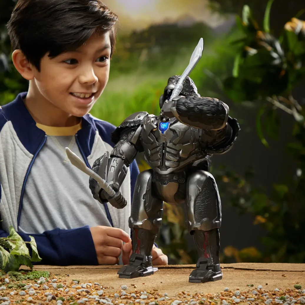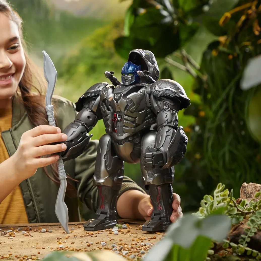 Mit dem elektronischen Command & Convert Optimus Primal Spielzeug können sich die Fans auf gorillastarke Verwandlungsaction einstellen! Optimus Primal verwandelt sich in seinen mächtigen Gorilla-Modus und beschützt als Anführer der Maximals die Erde vor jeglicher Bedrohung. Das elektronische Spielzeug bietet eine automatische Verwandlung vom Gorilla in einen Roboter, die sich durch Sprachbefehle aktivieren lässt. Mit Sprachsteuerung oder per Knopfdruck können die Fans über 100 Geräusch- und Bewegungskombinationen auslösen. Das Gorilla Spielzeug für Jungen und Mädchen beeindruckt mit realistisch geformten Felldetails und 2 Schwert-Accessoires. Die animatronische Figur präsentiert ein detailliertes Design im Look zum letzten Transformers Blockbuster Transformers: Aufstieg der Bestien. Spricht nur Englisch.