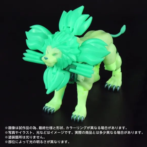 Aus dem Anime "Beast Wars II" kommt die lang erwartete Veröffentlichung des legendären grünen Löwen, Lioconvoy! Der Körper besteht aus einem leuchtenden Material, das es ihm ermöglicht, die grüne Glühszene im Anime nachzustellen.