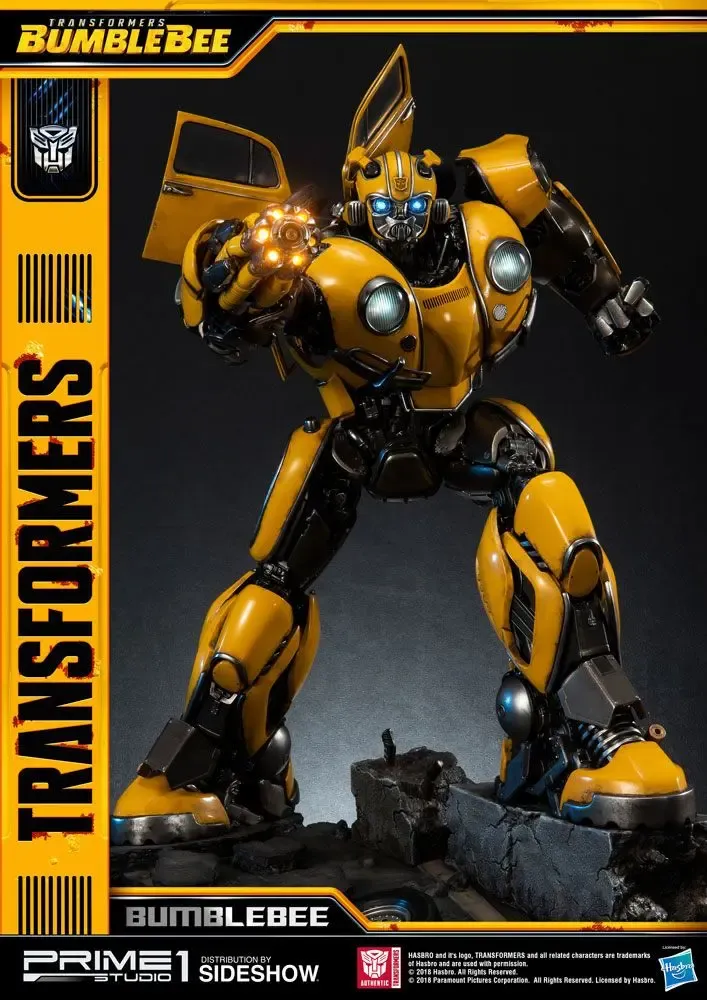 Zum Actionspektakel "Transformers: Bumblebee" kommt diese fantastische Statue von Bumblebee. Sie ist ca. 67 x 43 x 38 cm groß, wurde aus hochwertigem Polystone gefertigt und wird mit austauschbaren Teilen, styropor-geschützt, in einer bedruckten Box geliefert. Sie verfügt außerdem über diverse LED-Leuchtfunktionen.