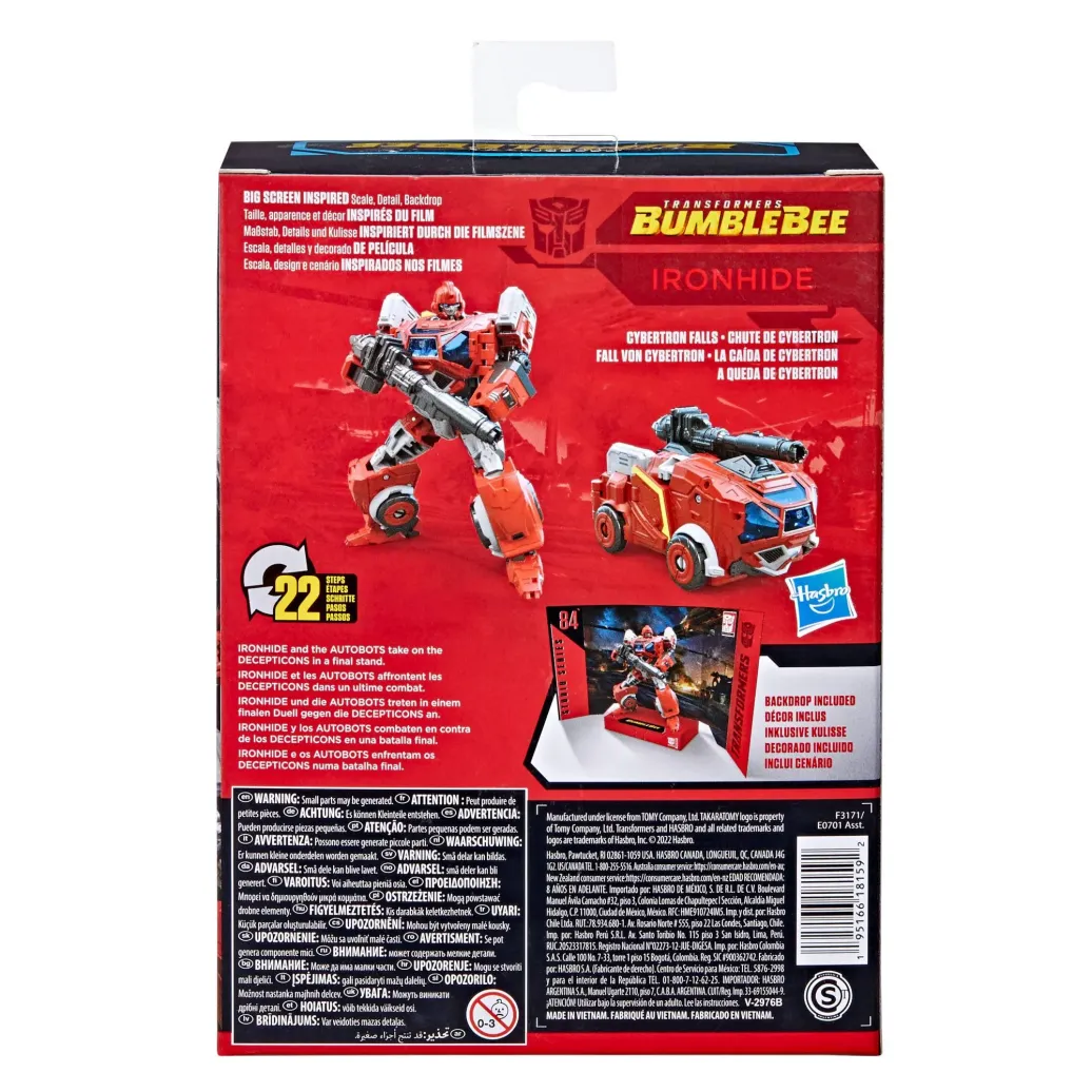 Diese durch Transformers: Bumblebee inspirierte 84 Deluxe-Klasse Ironhide Figur aus der Studio Series kann in 22 Schritten von einem Roboter in einen cybertronischen Panzer verwandelt werden. Durch das Entfernen der Kulisse kann Ironhide in der "Fall von Cybertron"-Szene präsentiert werden. In dieser Szene aus Transformers: Bumblebee treten Ironhide und die Autobots in einem finalen Duell gegen die Decepticons an. Mit dem enthaltenen Kanonen-Accessoire kann Wheeljack posiert werden, um diesen klassischen Filmmoment wiederzubeleben!
