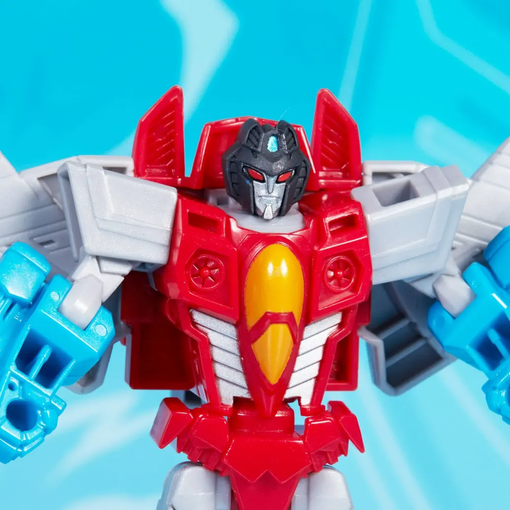 Diese 13,5 cm großen Optimus Prime, Bumblebee, Megatron und Starscream Warrior-Klasse Figuren laden die Fans dazu ein, die Autobots und Decepticons in epischen Battles gegeneinander antreten zu lassen. Optimus Prime kann in 8 Schritten vom Truck in einen Roboter, Megatron in 8 Schritten vom Panzer in einen Roboter, Bumblebee in 9 Schritten vom Sportwagen in einen Roboter und Starscream in 7 Schritten vom Jet in einen Roboter verwandelt werden. Der letzte Verwandlungsschritt aktiviert die Action Attacke der einzelnen Figuren. Nach der Verwandlung lässt sich die Attacke durch einfache Reaktivierungsschritte wiederholen.