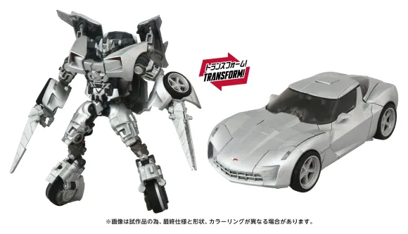Diese Figur ist eine Nachbildung von Sideswipe, dem Autobot-Kämpfer aus dem Film „Transformers: Die Rache“. Sein Fahrzeugmodus, der sich durch eine silber-weiße Karosserie auszeichnet, ist offiziell lizenziert und basiert auf dem Chevrolet Corvette Stingray Concept Car. Mit genialen Transformationen, die einer Spitzenmarke würdig sind, verwandelt er sich in seinen charakteristischen Robotermodus mit Knöchelreifen! Er wird mit den Cybertonium-Klingen geliefert, die im Film den Decepticon Sideways sofort durchschneiden und an beiden Armen befestigt werden können. Zwei Handkanonen sind ebenfalls enthalten. Zwei Effektteile sind ebenfalls enthalten, um den Roller Dash, eine beeindruckende Hochgeschwindigkeits-Kampfszene aus dem Film, nachzustellen.
