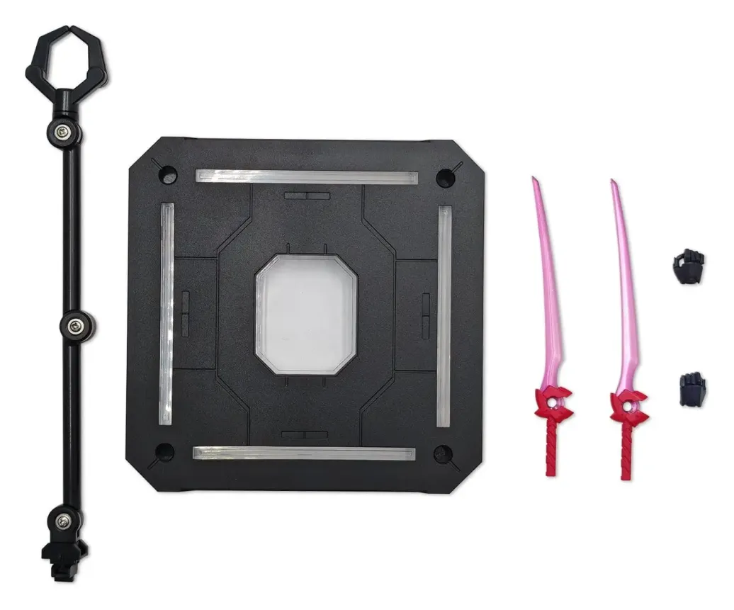 Die voll bewegliche Figur ist ca. 16 cm groß und wird mit weiterem Zubehör und Austauschteilen in einer bedruckten Box geliefert.