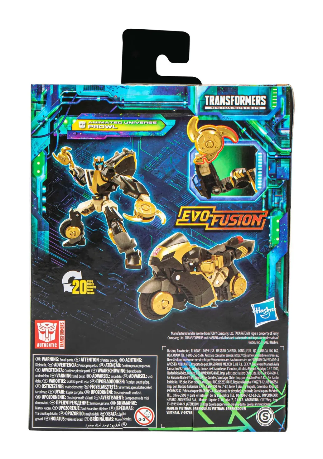 Mit der Transformers Legacy Evolution Animated Universe Prowl Action-Figur aus der Deluxe-Klasse entwickelt sich das Battle weiter! Prowl, ein ausgebildeter Cyber-Ninja, zieht es vor, allein zu arbeiten. Er schätzt die Umwelt der Erde und fühlt sich mit seiner natürlichen Umgebung verbunden. Die Transformers Spielzeuge wurden mit der Evo-Fusion Technologie aufgerüstet! Um die Evolution zu erleben und um auf das Battle vorzubereiten, können die Fans das Reifen-Zubehör in Schuriken-Accessoires verwandeln. Mit den Transformers Legacy Action-Figuren für Jungen und Mädchen lassen sich die letzten 40 Jahre Transformers Geschichte gebührend feiern. Transformers Legacy öffnet das Tor zu einem ganz neuen Universum der Power der Verwandlung, in dem alle Transformers Generationen vereint werden, wie man es bisher noch nie gesehen hat. Die verschiedenen Figuren eignen sich zum Sammeln und Kombinieren, um eine ideale Legacy Besetzung zusammenzustellen.