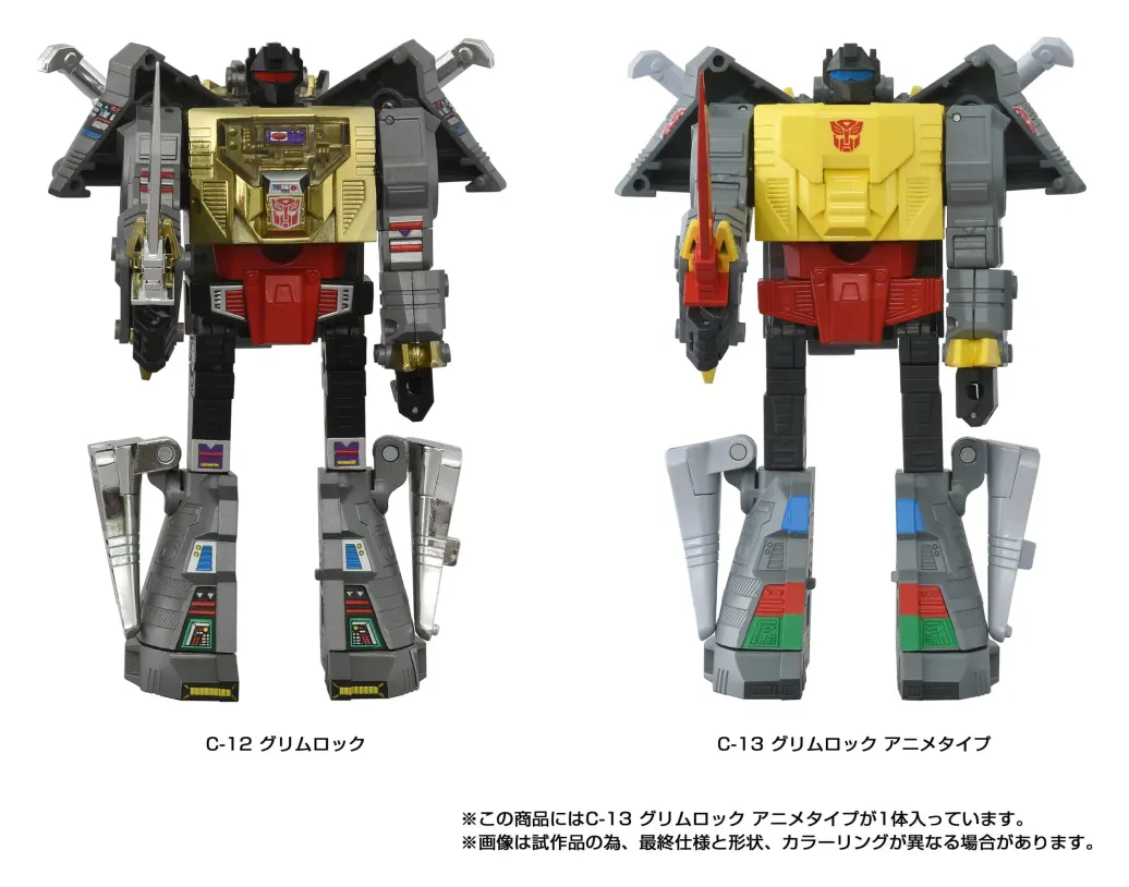 Vervollständigen Sie Ihre Sammlung mit der Takara Tomy Transformers Missing Link C-13 Grimlock Anime Actionfigur! Mit einem G1-inspirierten Design, das für dynamische Posen voll beweglich ist, verwandelt sich diese sammelbare Actionfigur für Erwachsene vom Roboter- in den Dinosaurier-Modus und verfügt über authentisches Takara Tomy Design und Deko, einschließlich eines versteckten, durch Wärme aktivierten Zeichens. Mit Premium-Zubehör sowie originaler japanischsprachiger Verpackung und Anleitung ist dieses Transformers-Spielzeug ein Muss für Fans von Transformers-Sammlerstücken.