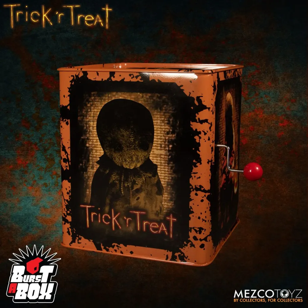 Aus Mezco's Burst-A-Box Reihe kommt diese wunderschöne Springteufel Spieluhr. Man dreht an der Handkurbel um am Ende springt Jason aus der Schachtel.