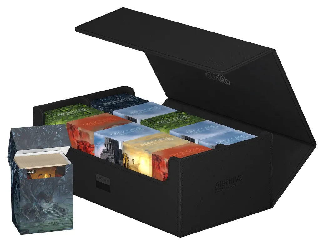 Verdopple deinen Stauraum mit unserem Arkhive 800+! Diese Box bietet Platz für mehr als 800 Karten double-sleeved in Standardgröße und kann bis zu 350 Toploader aufnehmen. Oder du füllst die beiden Reihen des Hives einfach mit einer Auswahl deiner bevorzugten Deckboxen. Das einfarbige Farbschema bietet ein stilvolles und zeitloses Design für Gamer und Sammler und der innovative ZnapClaw-Verschluss schützt deine Karten auf allen deinen Reisen.