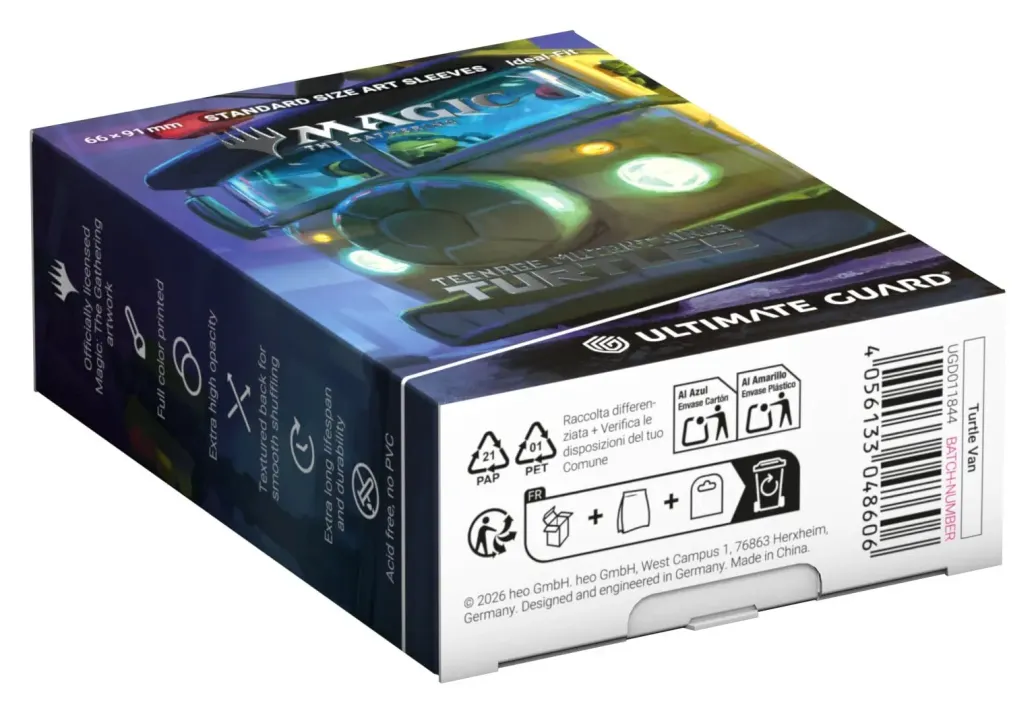 Ultimate Guard Art Sleeves sind Premium-MTG-Hüllen mit offiziell lizenzierten Artworks aus dem Magic: The Gathering | Teenage Mutant Ninja Turtles-Set . Die strukturierte Rückseite sorgt für ein hervorragendes Mischgefühl, während der farbintensive Aufdruck kratz- und abriebfest ist. Die extraklare Vorderseite garantiert perfekte Sicht auf die Karten, und die hochwertigen Materialien sorgen für eine besonders lange Lebensdauer der Hüllen.