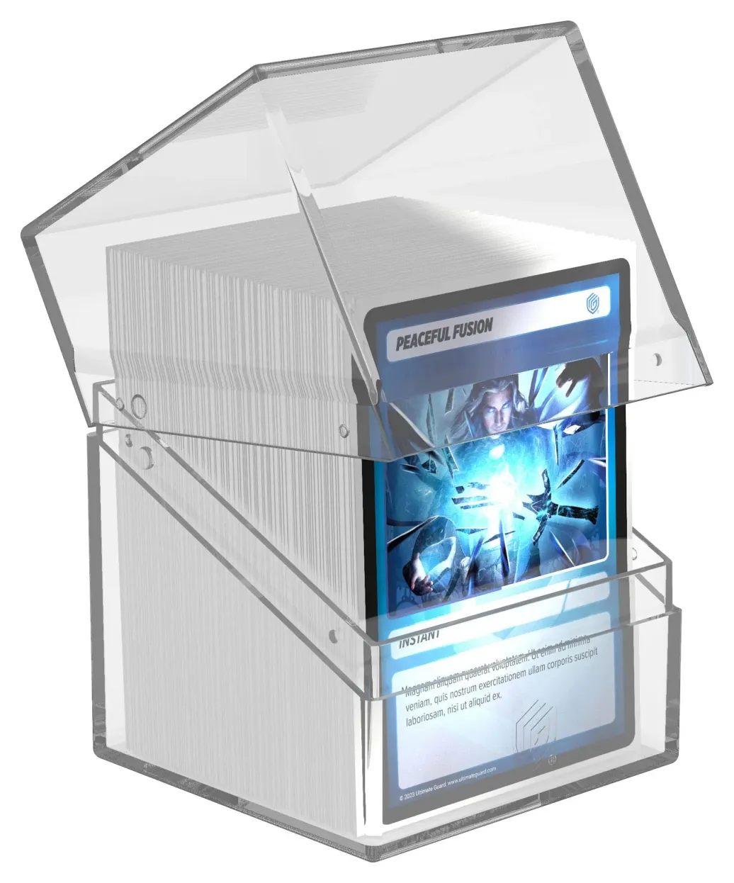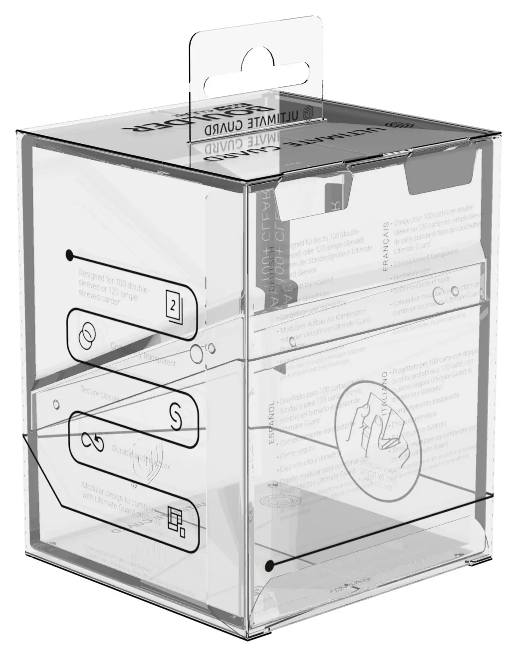 Die Legende ist zurück in neuem Design: Mit dem transparenten Boulder 100+ Clear habt ihr immer den Durchblick, welche Karten sich gerade in eurer Deck-Box befinden. Der Boulder 100+ Clear ist eine stabile und zuverlässige Deck-Box mit sicherem Verschluss. Geeignet für bis zu 100 (double-sleeved) oder 120 (single-sleeved) Karten aller gängigen Sammelkartenspiele wie Magic: The Gathering, Pokémon, Lorcana, One Piece oder Yu-Gi-Oh!