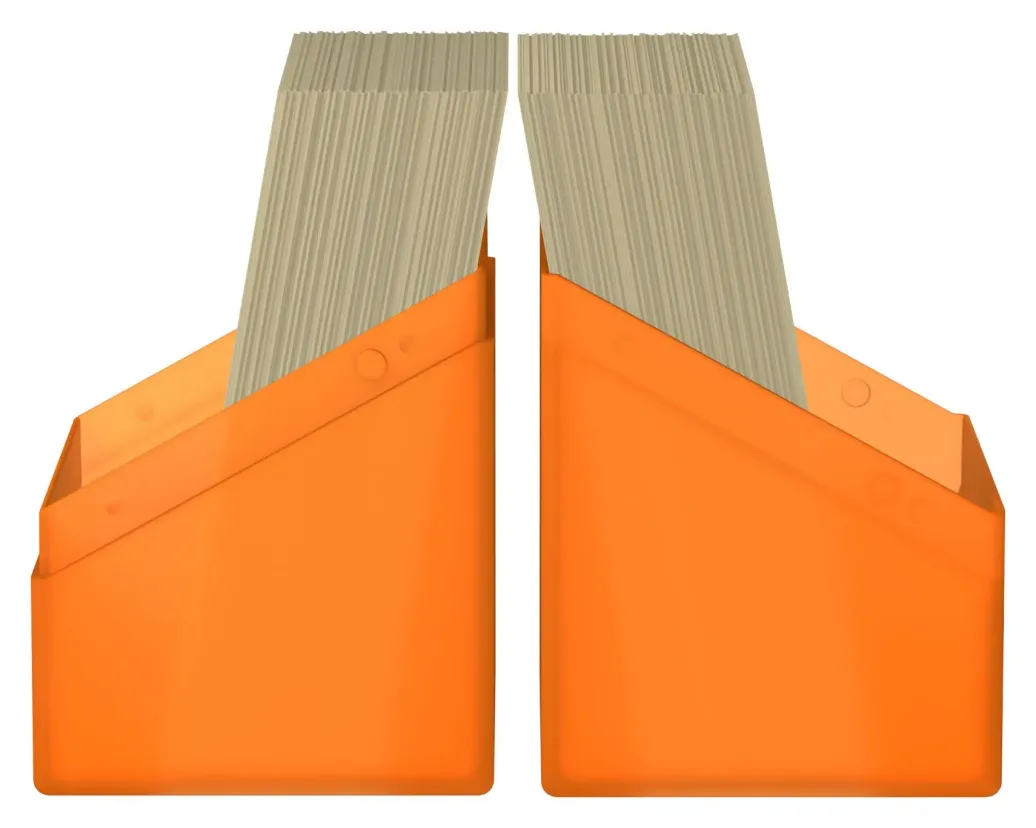 Die handliche, feste Kartenbox mit Soft-Touch-Oberfläche lässt sich besonders leicht öffnen und bietet Platz für bis zu 80 Karten (double-sleeved)1. Dank ihrem modularen Design passt sie perfekt in Flip'n'Tray und Arkhive Cases.