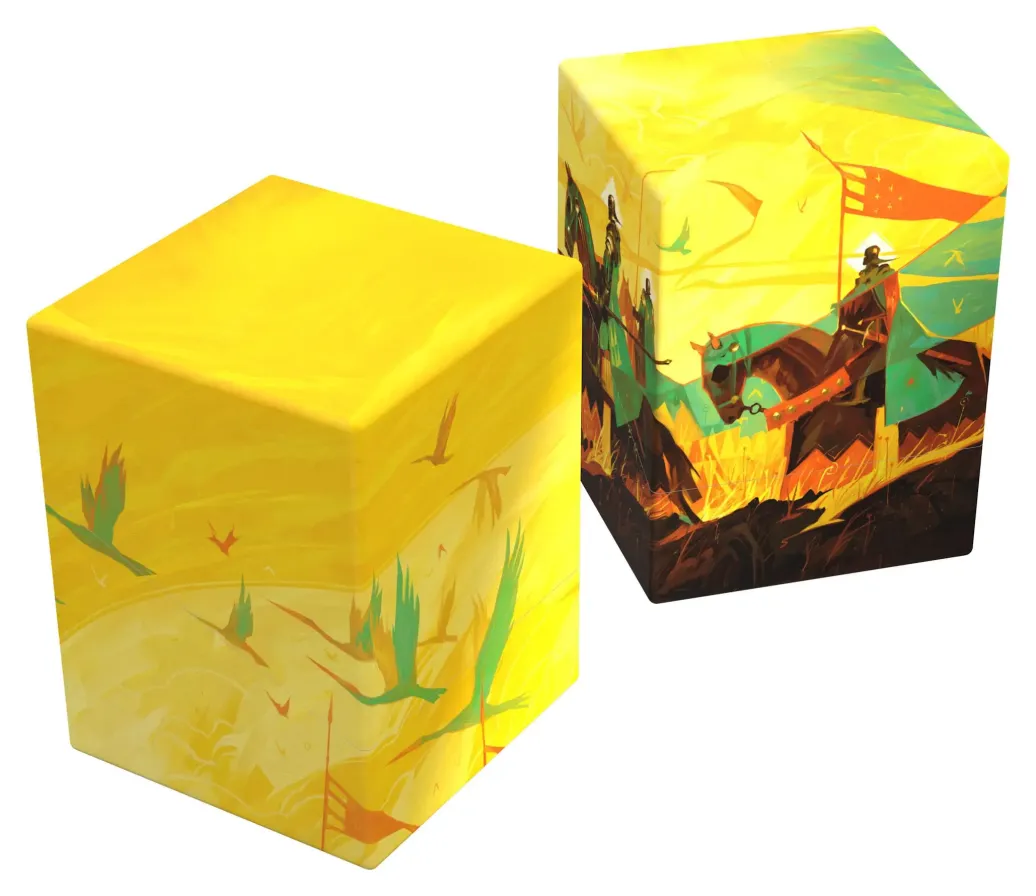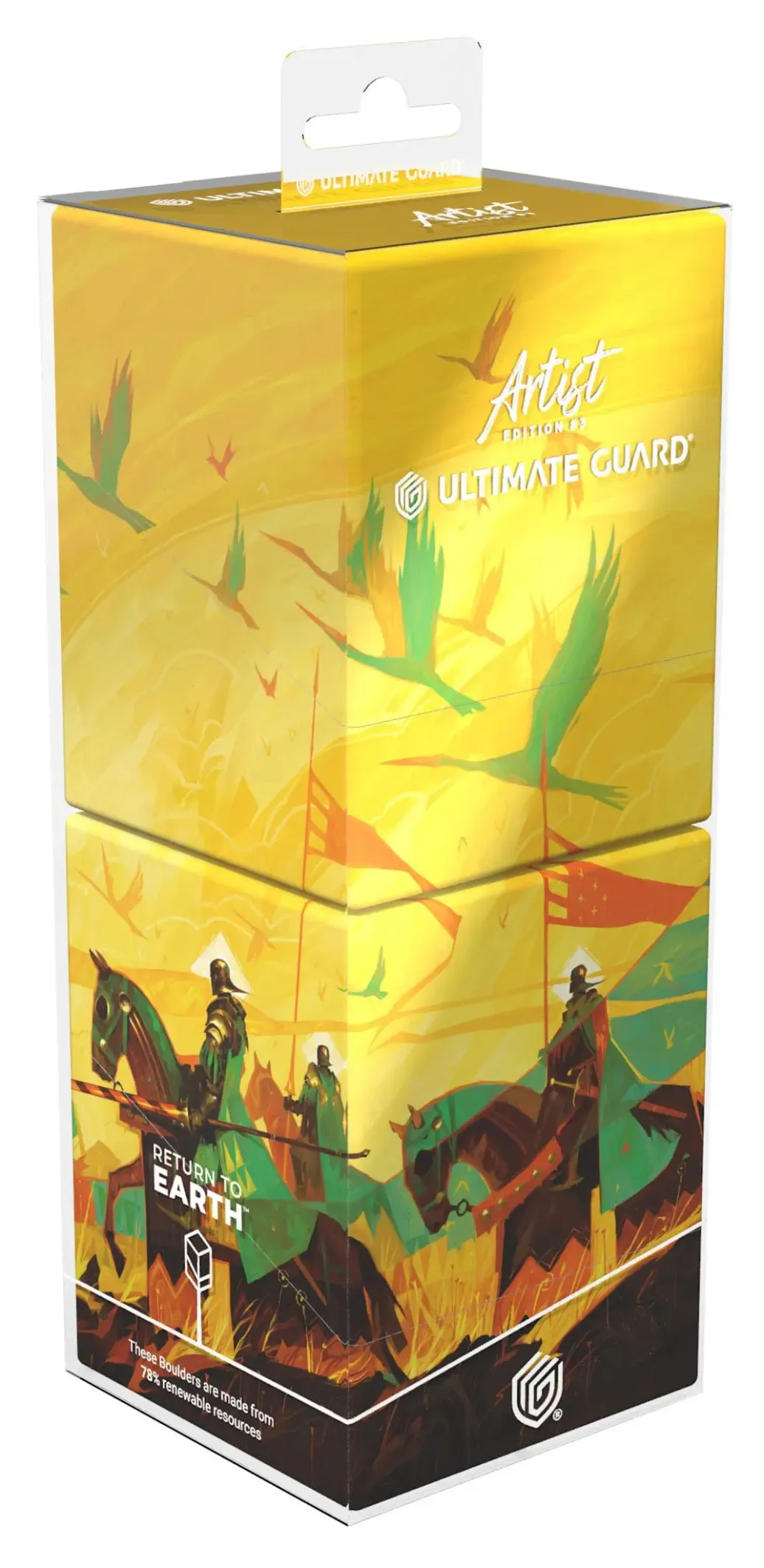 Ultimate Guards RTE Boulder 100+ sind stabile und zuverlässige Deck-Boxen, die in Deutschland aus 78?Prozent erneuerbaren Materialien hergestellt werden. Trotz ihres sicheren Verschlusses lassen sie sich angenehm leicht öffnen und bieten Platz für 100 doppelt gesleevte Karten in Hüllen von Ultimate Guard*, womit sie die perfekten Deck-Boxen für Sammelkartenspiele wie Magic: The Gathering, Pokémon, Lorcana, Flesh and Blood, Yu-Gi-Oh! und One Piece sind. Die Artist Edition #3 von Magic: The Gathering-Künstler Dominik Mayer enthält zwei RTE Boulder 100+, die miteinander kombiniert das vollständige Artwork zeigen.