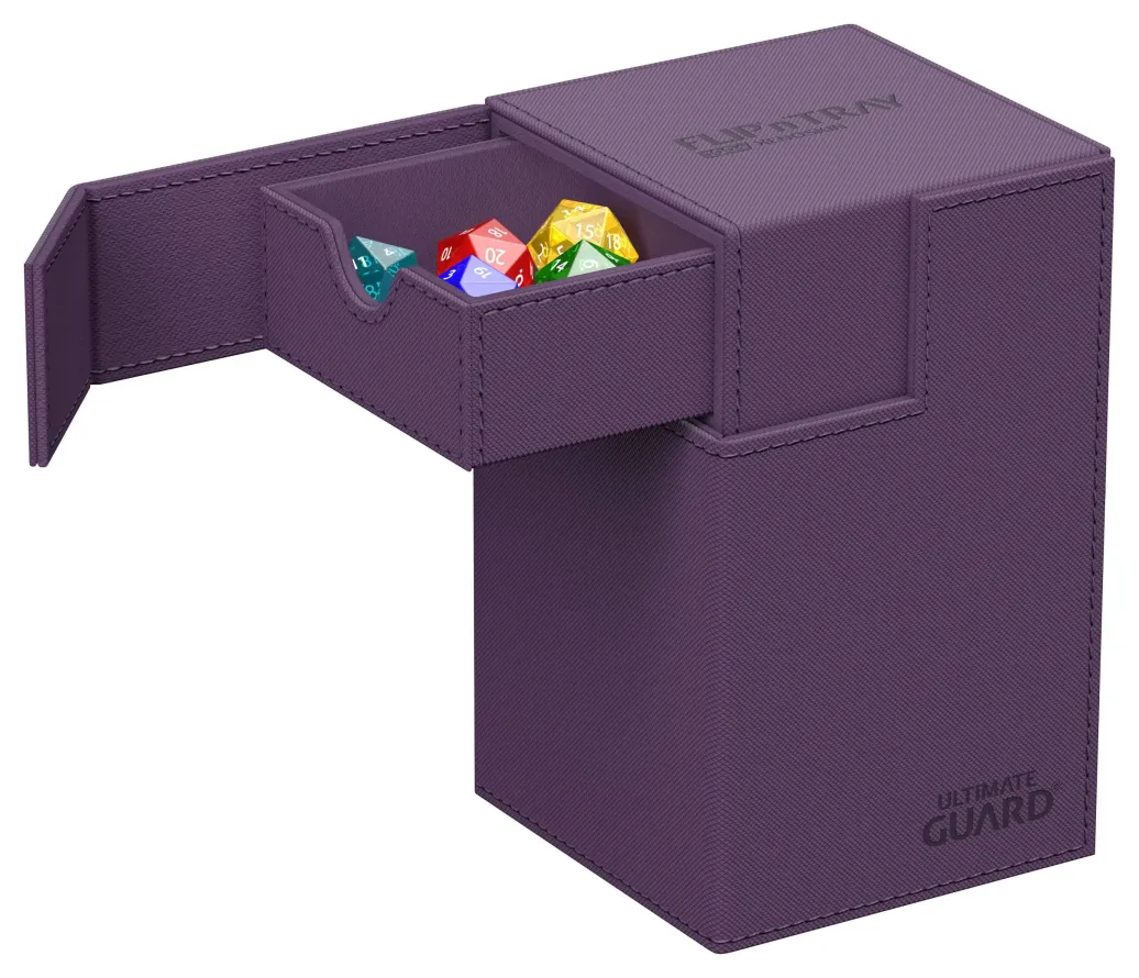 Der Inbegriff einer Ultimate Guard-Deckbox: ein zeitloses, einfarbiges Design mit starkem Magnetverschluss, Karten- und Würfelfächern für die sichere Aufbewahrung deines Decks und eine widerstandsfähige, aber elegante Xenoskin-Oberfläche. Suchst du nach zusätzlichem Schutz? Mit Platz für 100 Karten double-sleeved oder 120 Karten single-sleeved in Standardgröße bietet das Flip'n'Tray 100+ alles was es braucht!