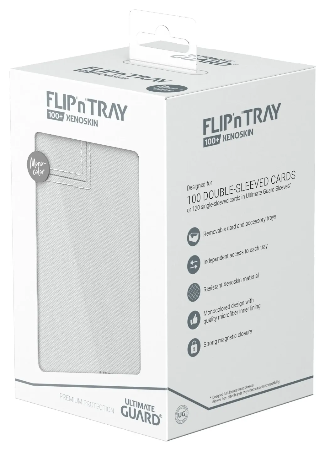 Der Inbegriff einer Ultimate Guard-Deckbox: ein zeitloses, einfarbiges Design mit starkem Magnetverschluss, Karten- und Würfelfächern für die sichere Aufbewahrung deines Decks und eine widerstandsfähige, aber elegante Xenoskin-Oberfläche. Suchst du nach zusätzlichem Schutz? Mit Platz für 100 Karten double-sleeved oder 120 Karten single-sleeved in Standardgröße bietet das Flip'n'Tray 100+ alles was es braucht!