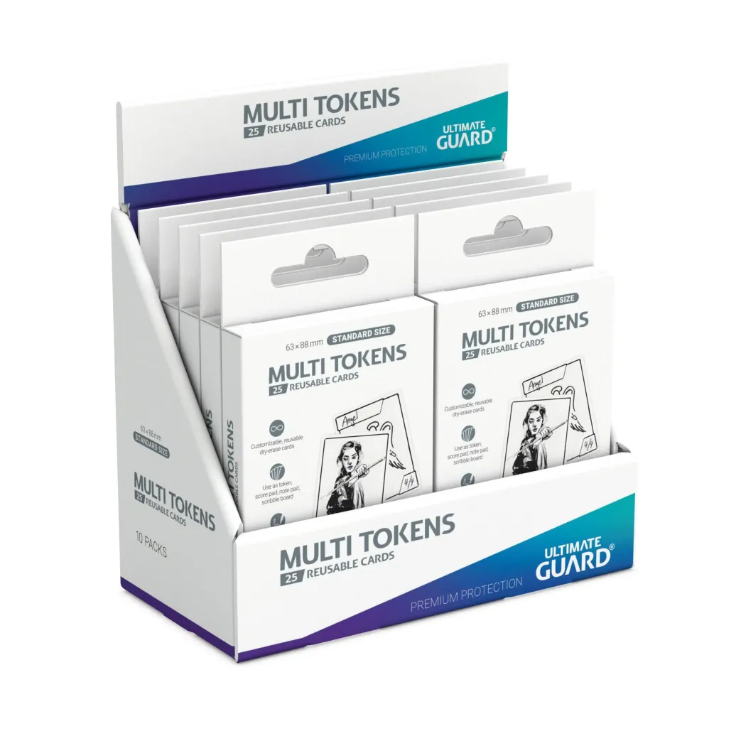 In Kombination mit einem abwaschbaren Stift sind die Tokens individuell gestalt- und wiederverwendbar, kommen in Standardgröße und sind aus stabilem Spielkartenkarton für langen Spielspaß hergestellt. Kritzle, Zeichne, Zähle und lass alles wieder verschwinden - mit unseren Ultimate Guard Multi Tokens.