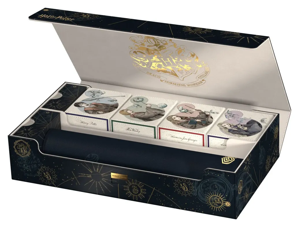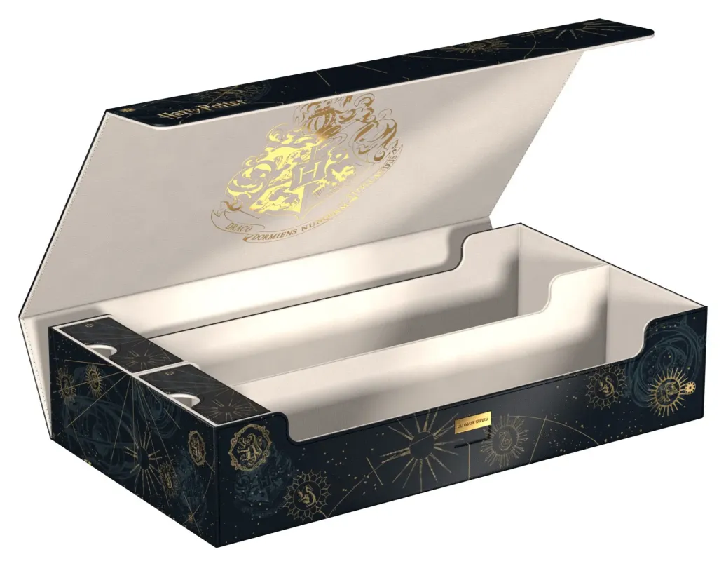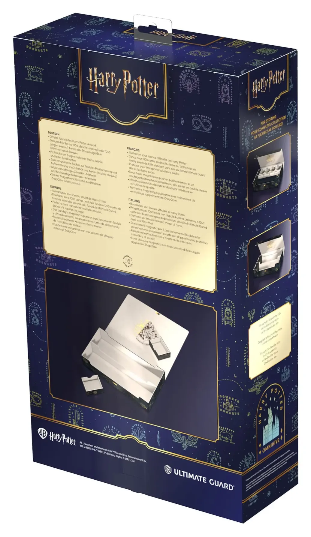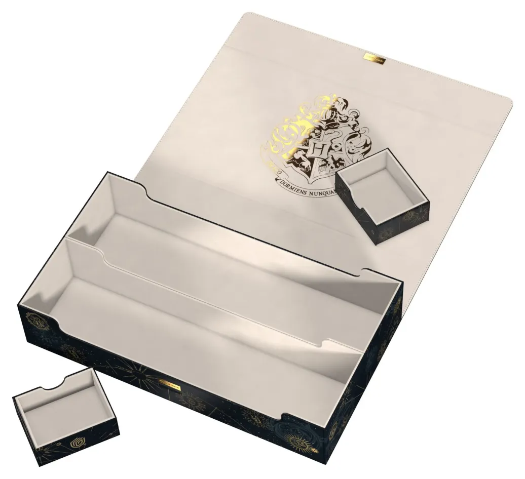 Erlebe die Magie von Hogwarts mit dem Omnihive 1000+ Xenoskin Harry Potter von Ultimate Guard. Die Massenaufbewahrungsbox aus widerstandsfähigen Xenoskin-Material wurde designt, um gleichzeitig mehrere Deck-Boxen, Würfel und/oder Play-Mats oder alternativ bis zu 1000 doppelt gesleevte Karten unterzubringen. Der Omnihive sowie die beiden praktischen und flexibel positionierbaren Magnetfächer im Inneren haben eine schonende Innenseite aus Mikrofaser. Der Deckel der ist mit starken Magneten und unserem ZnapClaw-Mechanismus gesichert.