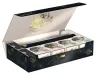 - Zwei magnetische Fächer zur flexiblen Positionierung und Aufbewahrung von Zubehör und Karten (double-sleeved)