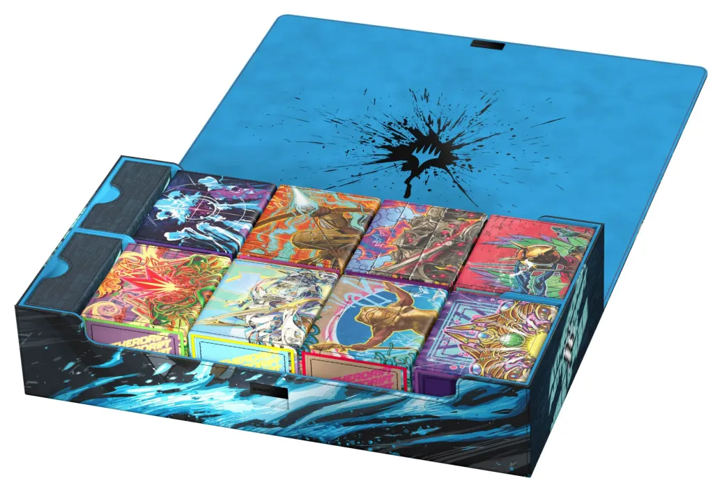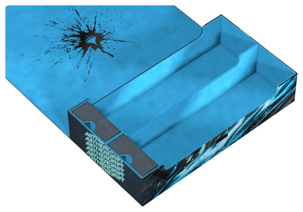 Mach dich bereit für Magic: The Gatherings actionreiche Edition Aetherdrift mit Ultimate Guards Omnihive 1000+ Xenoskin. Der Omnihive mit offiziell lizensiertem MTG-Artwork ist eine Massenaufbewahrungsbox, die entwickelt wurde, um mehrere Deck-Boxen, Würfel und/oder Play-Mats gleichzeitig oder alternativ eine große Menge Einzelkarten (bis zu 1000 double-sleeved) unterbringen zu können. Die beiden praktischen und flexibel positionierbaren Magnetfächer im Inneren sind wie das Äußere der Box aus vollfarbig bedrucktem und widerstandsfähigen Xenoskin-Material und haben eine schonende Innenseite aus Mikrofaser. Der Deckel des Omnihive 1000+ Xenoskin ist mit starken Magneten und unserem ZnapClaw-Mechanismus gesichert.