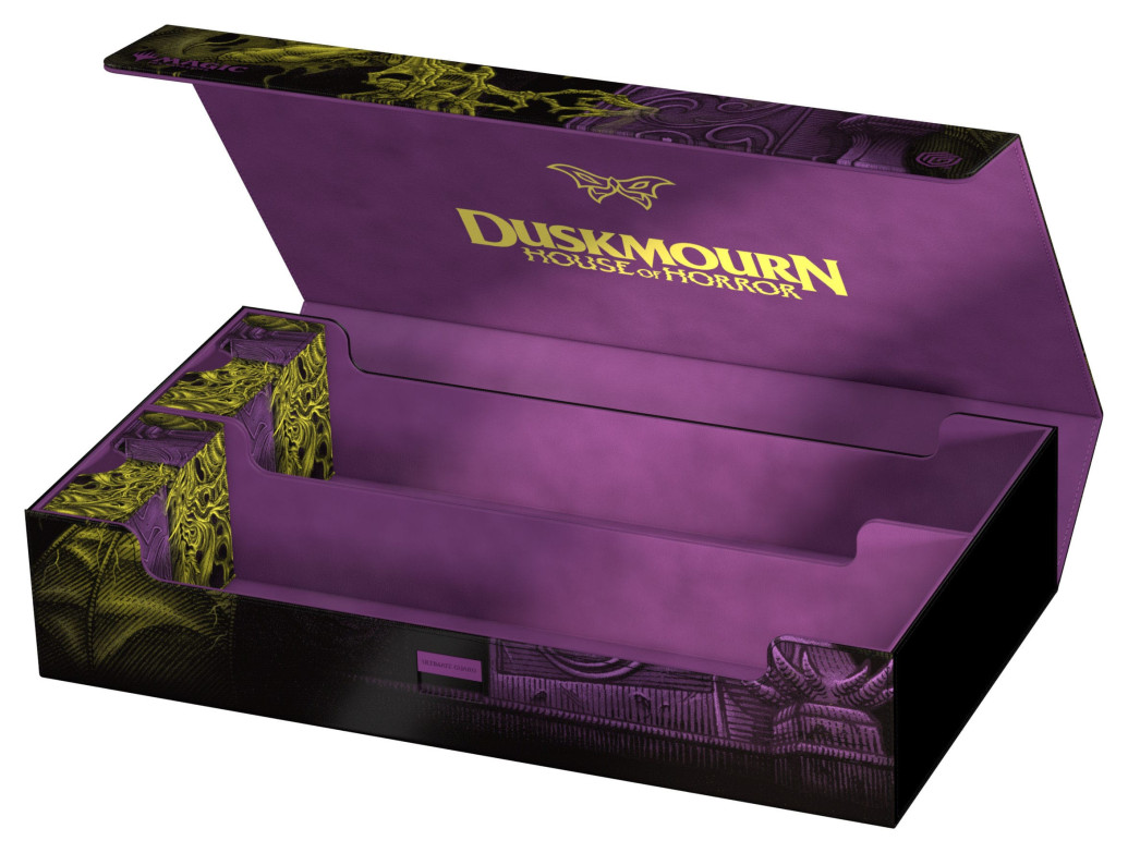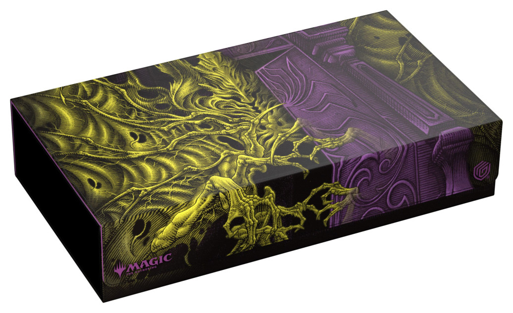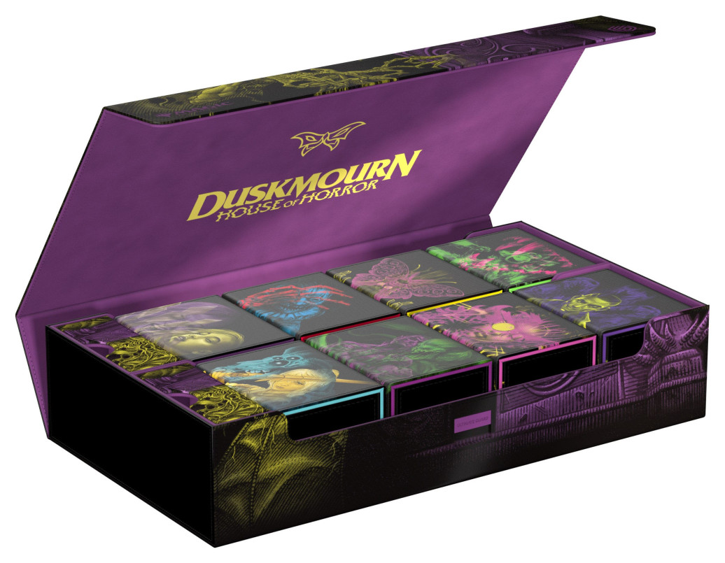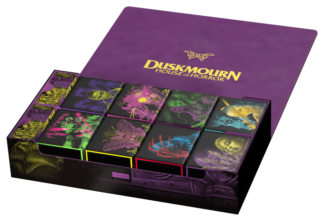 Valgavoth sucht nicht nur The House heim, sondern wacht auch über den Ultimate Guard Omnihive 1000+ Xenoskin zu Magic: The Gatherings neuem Set Duskmourn: House of Horror. Im Omnihive finden mehrere Deck-Boxen und/oder Play-Mats Platz, alternativ können dort über 1000 einzelne Karten (double-sleeved) aufbewahrt und transportiert werden. Die zwei flexibel positionierbaren, magnetischen Fächer sind perfekt geeignet, um Würfel und Tokens aufzubewahren. Die Deck-Box aus widerstandsfähigem Xenoskin-Material zeigt das offiziell lizensierte Magic: The Gathering-Artwork zu Valgavoth, Terror Eater von Illustrator Pig Hands. Die hochwertige und stylische Mikrofaser-Innenseite, ein starker Magnetverschluss sowie unser ZnapClaw-Mechanismus sorgen dafür, dass alle Inhalte des Omnihive sicher verstaut sind. Zum Beispiel die Sidewinder 100+ Xenoskin-Deck-Boxen im gleichen Stil aus unserer Duskmourn: House of Horror-Serie!