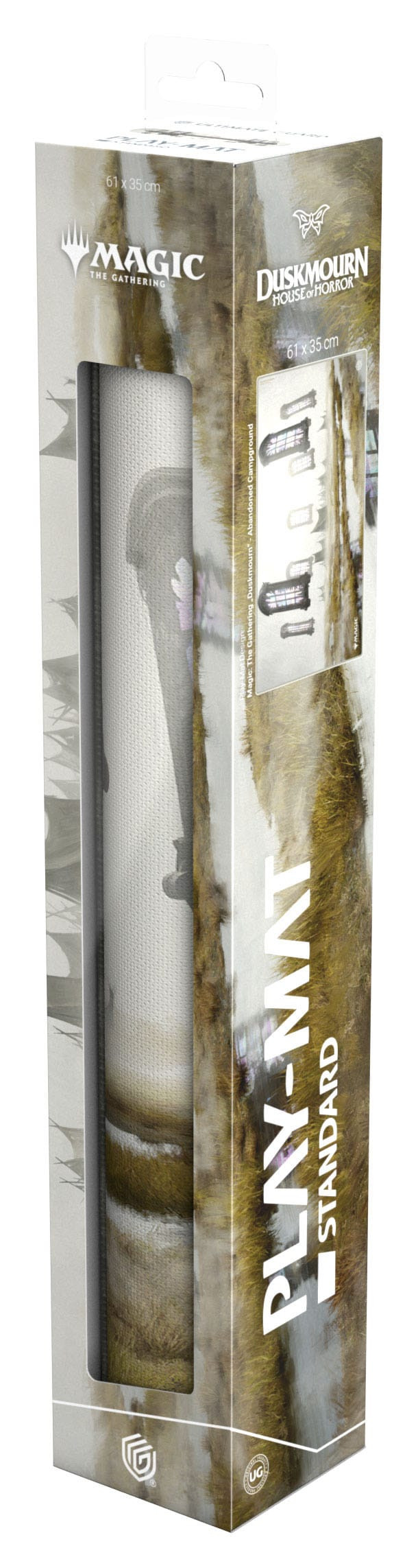 Entdecke verwunschene Orte und die unheimlichen Ecken von Duskmourn auf den Play-Mats zu Magic: The Gatherings neuem Horror-Set. Die Spielmatte im Standardmaß 61x35cm schützt deine Karten beim Spielen und verbessert das Spielerlebnis dank der rutschfesten Unterseite, während die genähten Ränder eine noch längere Lebensdauer garantieren. Die hochwertige Oberseite der Play-Mat ist mit offiziell lizensierten Magic: The Gathering-Artworks von Warren Mahy, Cristi Balanescu, Bartek Fedyczak und Antonio José Manzanedo aus Duskmourn: House of Horror bedruckt.