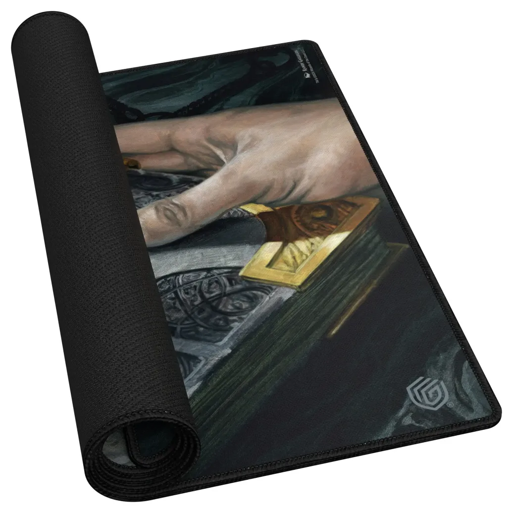 Dein gesammeltes Wissen ist hier sicher: Die qualitativ hochwertige Spielmatte aus der von Ravnica inspirierten "Guild Summit"-Serie zeigt das Magic: The Gathering-Artwork "Tome of the Guildpact" von Randy Gallegos. Die Play-Mat hat eine rutschfeste Unterseite und genähte Ränder für ein noch langlebigeres Spielerlebnis.