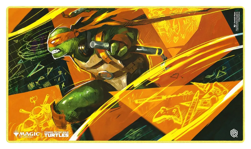 Ultimate Guards Play-Mat Standard mit offiziell lizenzierten Artworks aus dem "Magic: The Gathering | Teenage Mutant Ninja Turtles"-Set ist eine hochwertige MTG-Playmat in der Größe 61 x 35 cm, die für ein angenehmes und verbessertes Spielerlebnis sorgt. Karten, Hüllen und Zubehör werden beim Spielen zuverlässig vor Kratzern, Abnutzung und Schmutz geschützt. Die weich gepolsterte Spielmatte besteht aus 2 mm dickem Naturkautschuk, verfügt über unsere bewährte rutschfeste Textur auf der Rückseite und eine weiche, bedruckte Stoffoberfläche. Die genähten Ränder verhindern ein Ausfransen und garantieren eine lange Lebensdauer.