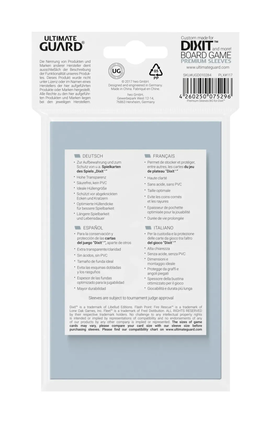Der Pack enthält 90 hochwertige Kartenhüllen zur Aufbewahrung und zum Schutz von Brettspielkarten, passend für Spiele wie Dixit™, Planet Steam™, Flash Point: Fire Rescue™, Fleet™ und weitere.