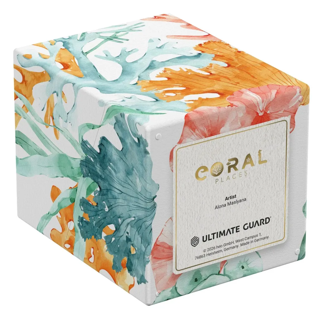 Der RTE Boulder 100+ von Ultimate Guard aus der "Coral Places"-Reihe ist eine robuste und zuverlässige Deckbox, die in Deutschland aus 78% erneuerbaren Rohstoffen hergestellt wird. Trotz seines sicheren Verschlusses lässt sich der RTE Boulder 100+ einfach und bequem öffnen und bietet Platz für 100 doppelt gesleevte Karten (in Ultimate Guard-Hüllen*), was ihn zur idealen Deckbox für Sammelkartenspiele wie Magic: The Gathering, Pokémon, Lorcana, Flesh and Blood, Yu-Gi-Oh!, Riftbound oder One Piece macht. Der hochwertige Vollfarbdruck der Deckbox ist beständig und farbintensiv, die umweltfreundliche Verpackung besteht aus 100% recyceltem und weiter recycelbarem Material. Boulder sind mit allen Massenaufbewahrungsboxen von Ultimate Guard kompatibel und lassen sich besonders gut mit Arkhive-, Superhive- und Flip'n'Tray-Boxen kombinieren.