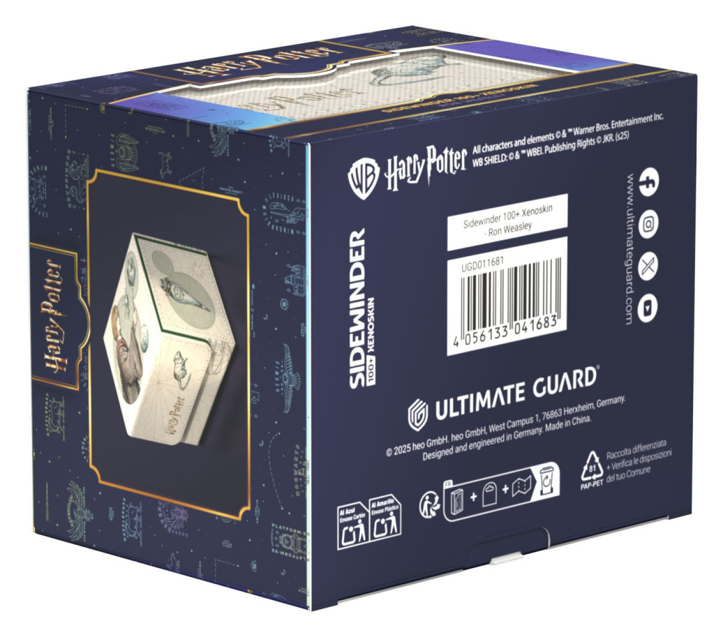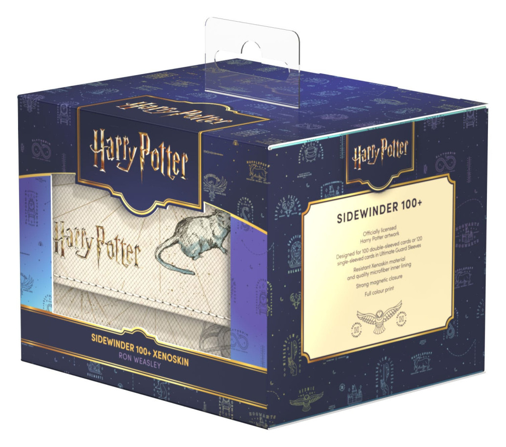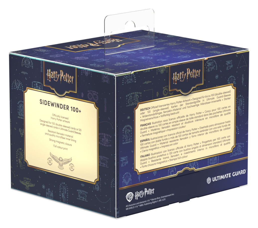 Erlebe die Magie von Hogwarts hautnah mit Ultimate Guards Harry Potter Sidewinder 100+ Xenoskin. Die vollfarbig bedruckten Deck-Boxen aus widerstandsfähigem Xenoskin Material bieten Platz für bis zu 100 (double-sleeved) oder 120 (single-sleeved) Karten. Mit ihrer hochwertigen Mikrofaser-Innenseite und dem starken Magnetverschluss sind sie der perfekte Aufbewahrungsort für deine Decks und Sammelkarten.