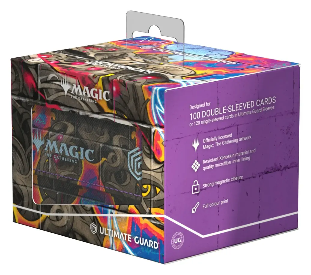 Der Sidewinder 100+ aus widerstandsfähigem Xenoskin-Material fasst bis zu 100 (double-sleeved) bzw. 120 (single-sleeved) Karten und ist perfekt als Deck-Box für Commander-Decks geeignet. Vollfarbig bedruckt mit Artworks aus Magic: The Gatherings Edition Aetherdrift, sind Ultimate Guards Sidewinder-Deck-Boxen mit ihrem starken Magnetverschluss und der schonenden Mikrofaser-Innenseite der perfekte und sichere Aufbewahrungsort für Decks und individuelle Sammelkarten.